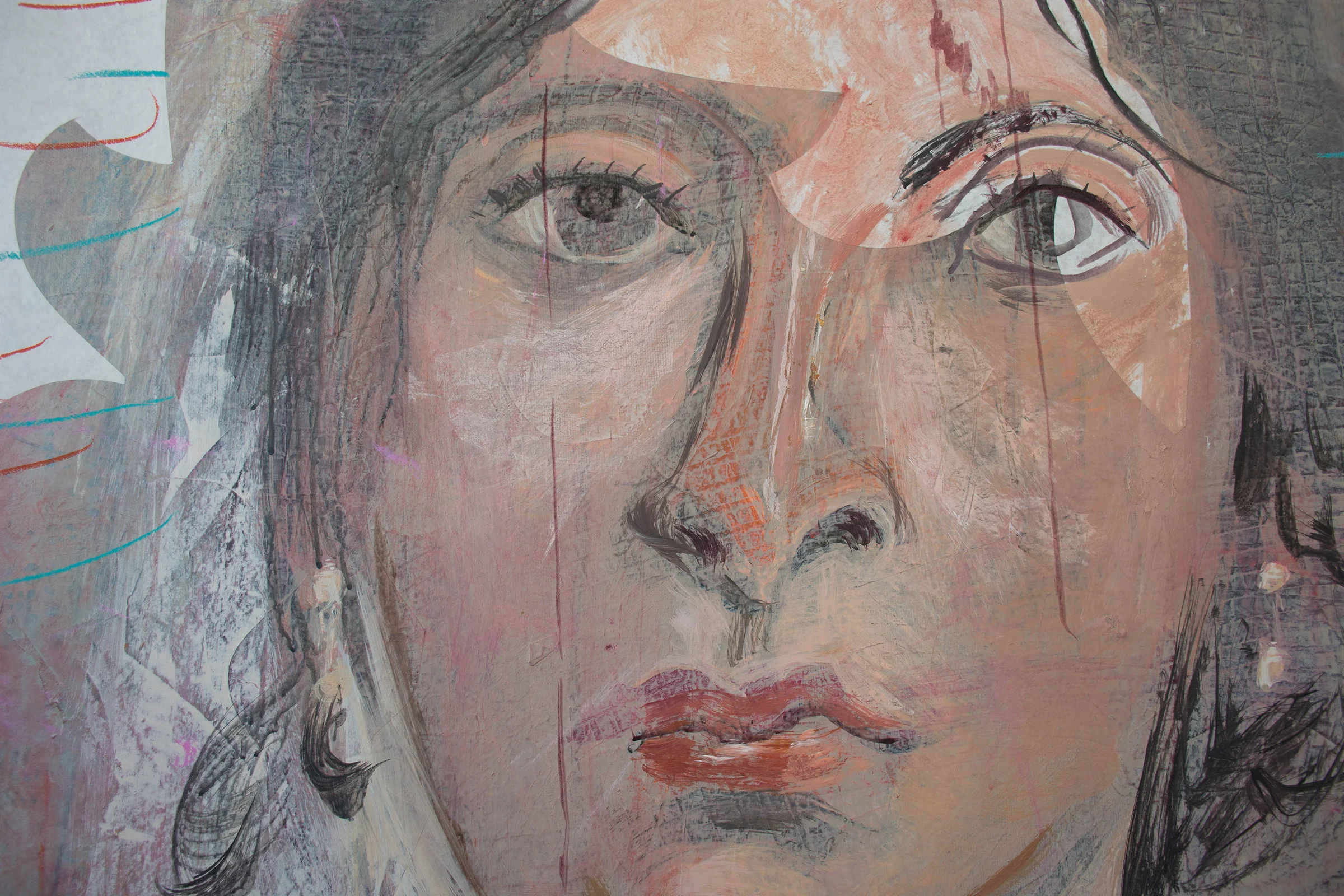 GAZE 34 comments: more collaging happened this morning, as you can see. much of it old maps i cut up.that's how her necklace went from grey to green; bits of an old map of georgia. she's still not there though and, based on recent experience with this series, anything could happen. there's a bit of disharmony between the image itself, based upon a 1st c. fayum portrait, and the collaged areas, which don't yet fully integrate. i felt the need to break up the form this morning though. the image was becoming too solidified into a portrait, rather than a painting. this been an ongoing issue. it's a little like seeing people in a stereotypical way, as opposed to seeing their fullness of being. pardon me for lapsing into crestone-speak, but that's the way it is. as i have said over and over, for me it's all about process. which is why i see the history of art as an unfolding story, rather than a series of landmark events through time. i know my buddy, the great story teller vermeer would have agreed.