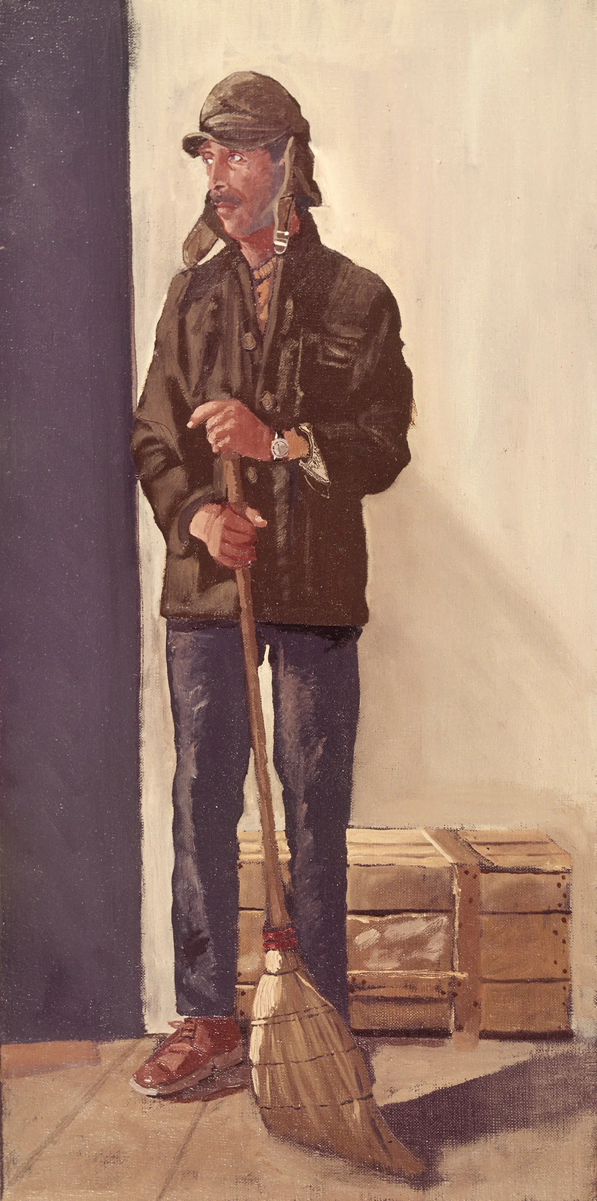 8:54 AM: this is a painting in oil on linen, ca. 1975, of my favorite model at the time; kyriakos. he was a street cleaner in plaka, where my studio was located, facing the roman tower of the winds monument. he was considered retarded, but i didn't think of him that way. he came and posed for drawings and paintings, all the while looking out my studio window to make sure his supervisor wasn't nearby.