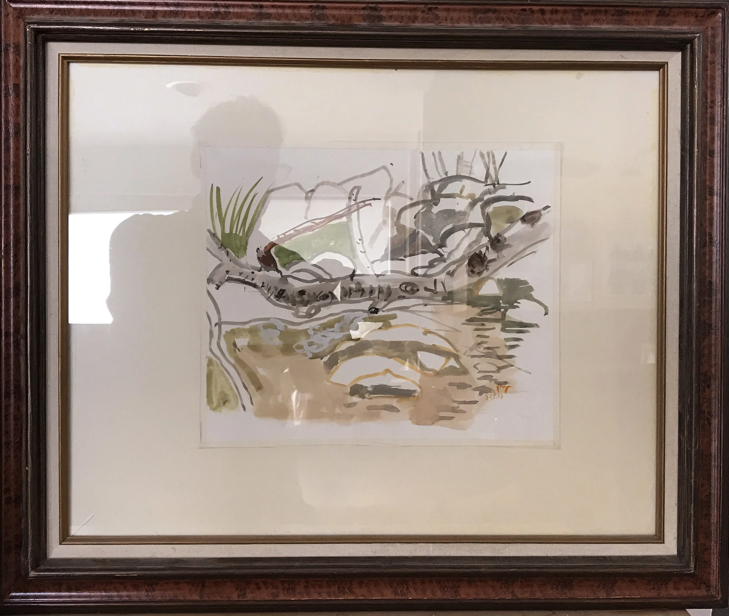 10:45 AM: here is yesterday's plein air #1 in a temporary frame. looks a lot better. a frame, said tsarouchis in one of his pithy quips, is the pimp of a painting.