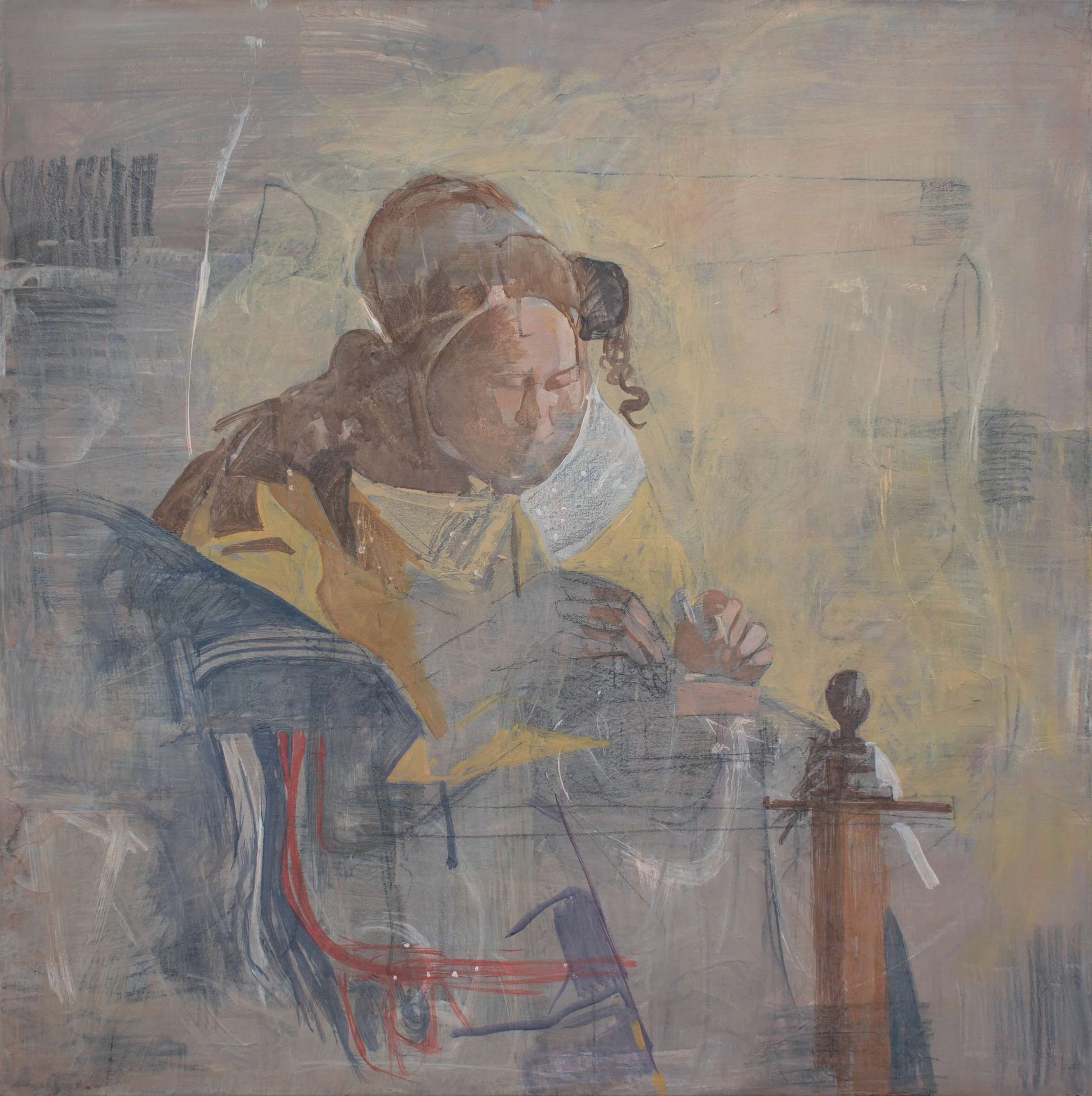 compositionally at least, i feel the painting has improved. the yellow area to the right of the figure in the earlier version was dead space. filler.....let's see how things unfold tomorrow.