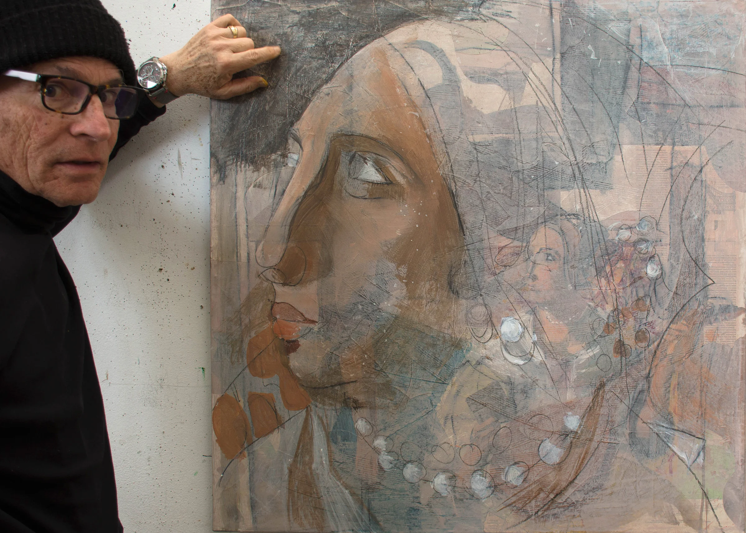 4:26: i realized last night that i had gone a bit too far in pushing back the black area to the left of the head in gaze 35. so i very gently modified it to create a bit more contrast, without throwing off the delicate balance of the painting. BELOW left is the painting as it looked this morning, and on the right, how it after slightly darkening the black