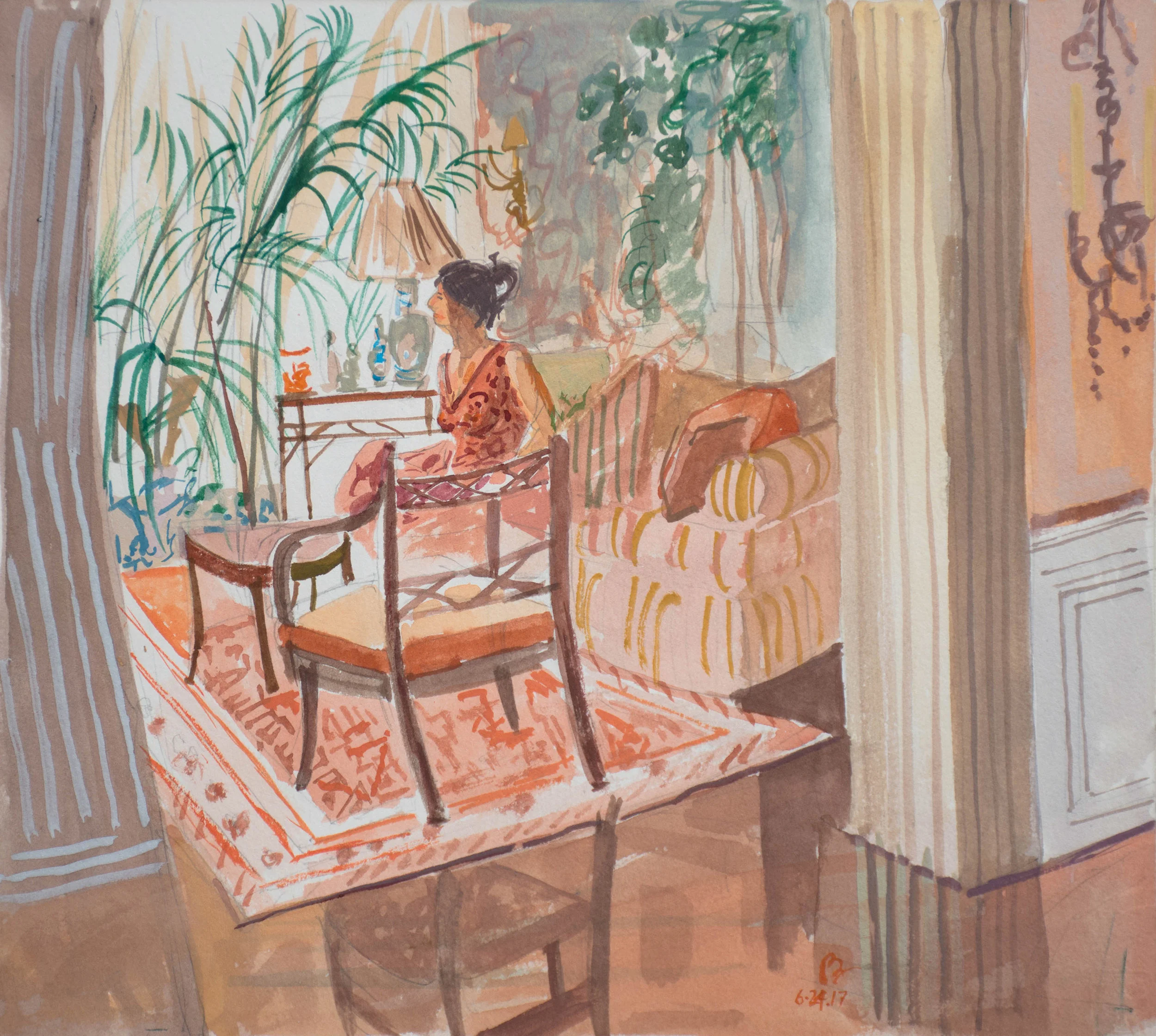 2:24 PM: i completed work on gouache interior 6 this morning. it's not right for making a larger version in oil, so i'm preparing a surface in archival watercolor paper to beging gouache interior 7, which will likely be made larger once it's complete. i'm not ruling out #6 becoming a larger oil, i'm just looking for a quality right now that this one doesn't have....more elements, more spaces