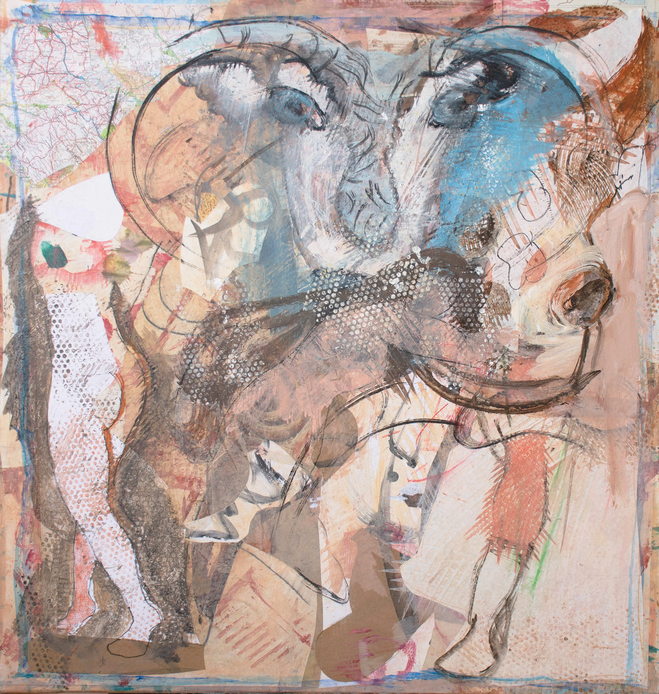 4:23 PM: i arrived late at the studio today due to an extended morning trail walk. i found lucien, as mikela & my friend wendy commented, way too busy, with all those reddish marks bouncing about. so now it has more coherence, but it's not htere yet. i'll dive back in tomorrow morning.