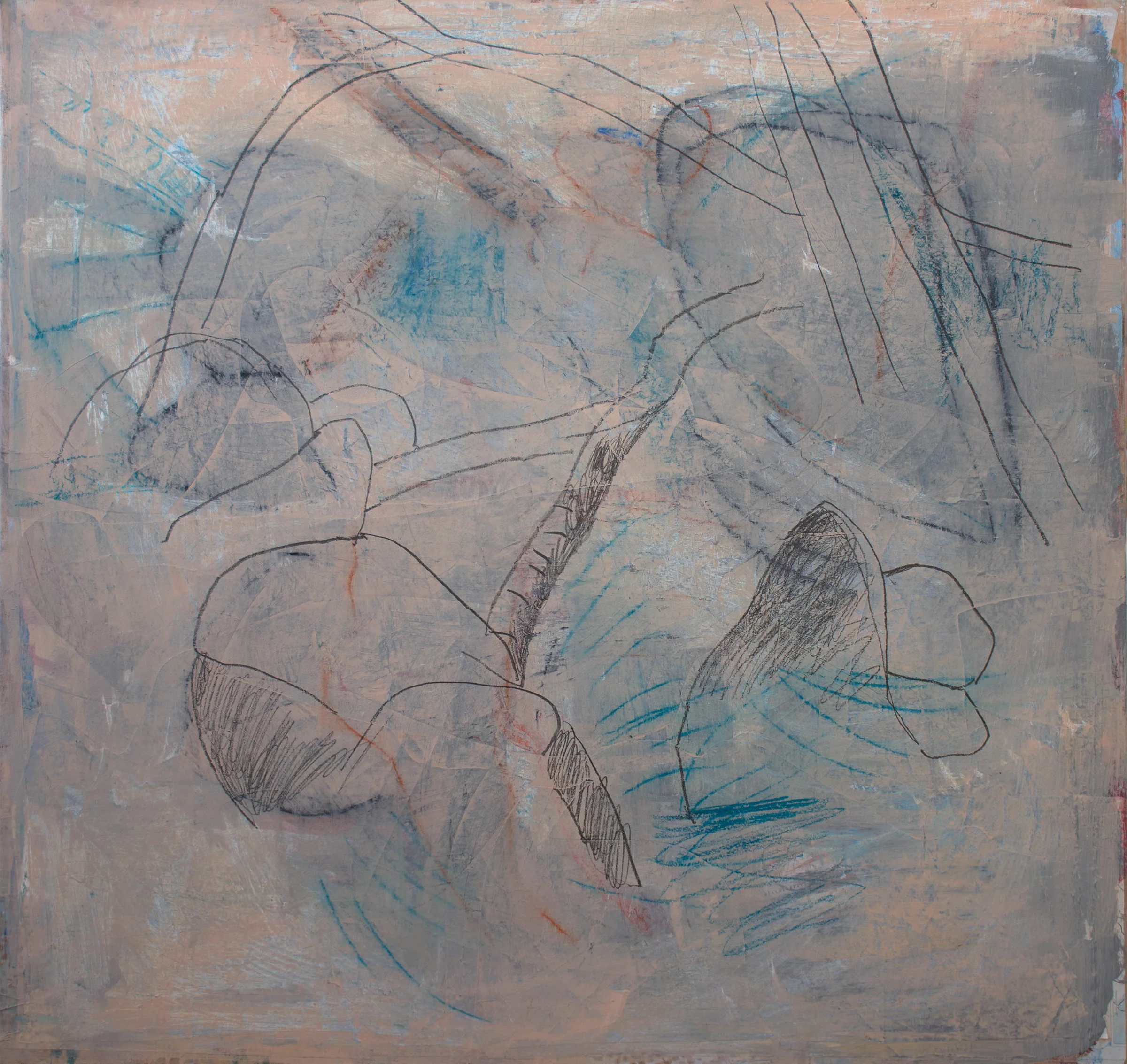 11:15 am: as the eclipse progresses and we are enveloped in stillness, i continue work on lucien, which has now been flipped 90 degrees and is 36x38" a distinct influence is now coming form my creek drawings, two of which i'm glancing at as i work on this painting.