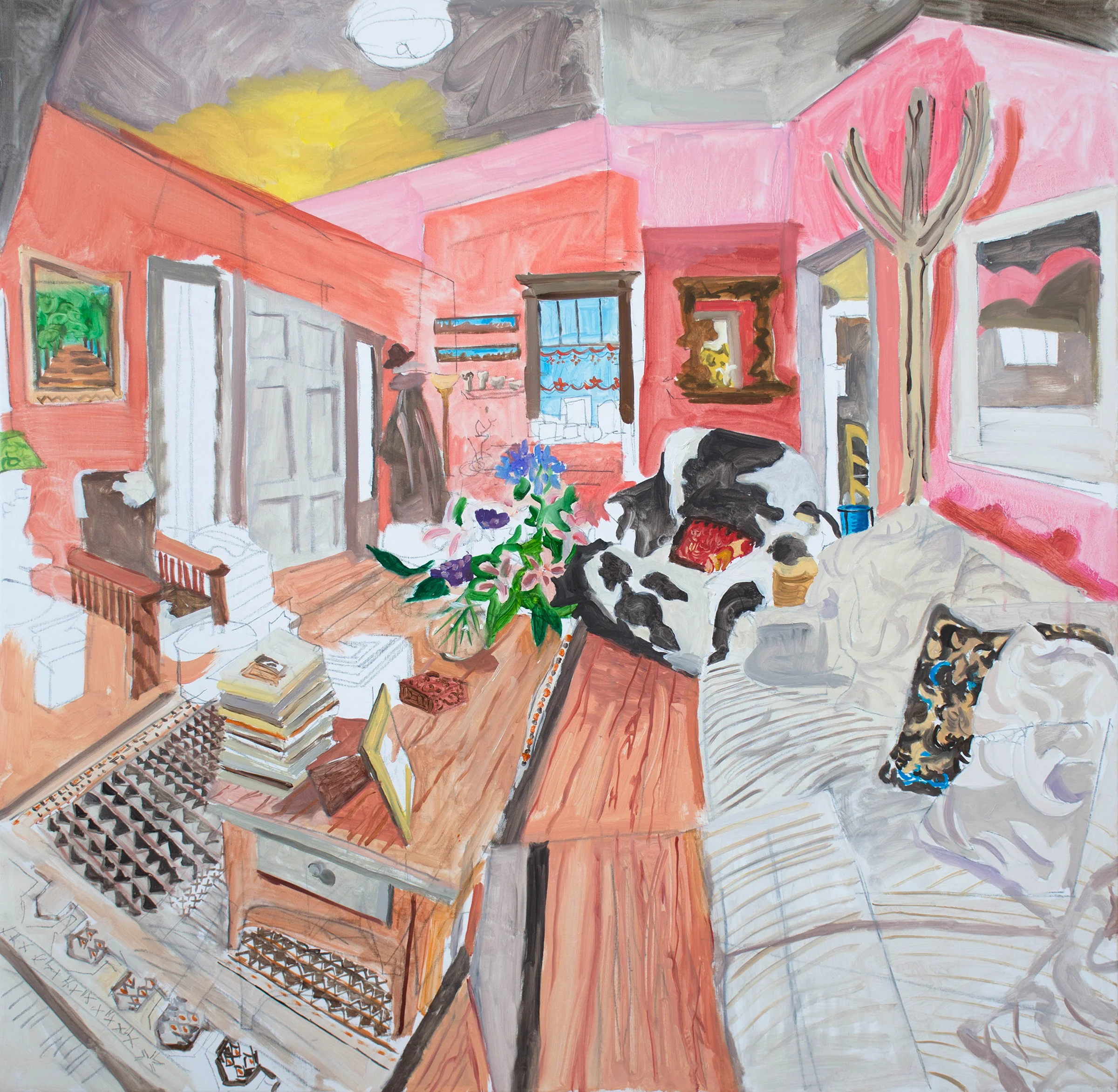 2:30 PM: we had an important teacher meeting yesterday & when it was over, it was really too late to start working. morning first thing always best. so now oil interior 6 is nearing completion. the final strokes are always the most interesting and the most critical. so i have to proceed with caution, while at the same time not holding back. we'll see how it goes in the morning. today a lot of the remaining white canvas is gone, so it's easier to envision the completed painting.