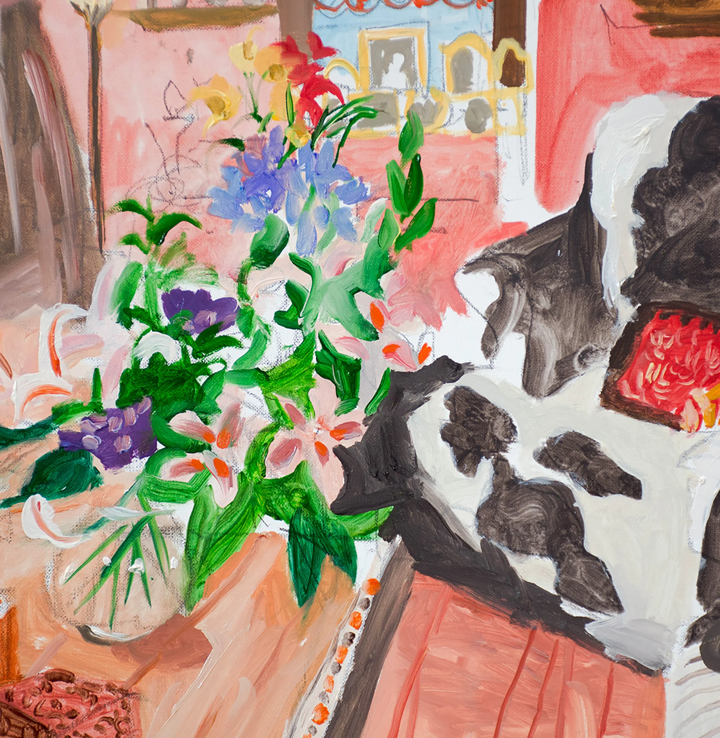 today was significant in that i almost completely eliminated unwanted white areas of canvas, allowing the eye to gaze at the painting and see it as a coherent whole., perhaps for the first time since i started this painting, as i'm adjusting and cropping pics I just shot the latest state, i'm getting ideas for blowing up areas of a completed painting and using them for new ones. the crop you see here, for example, is one of them.