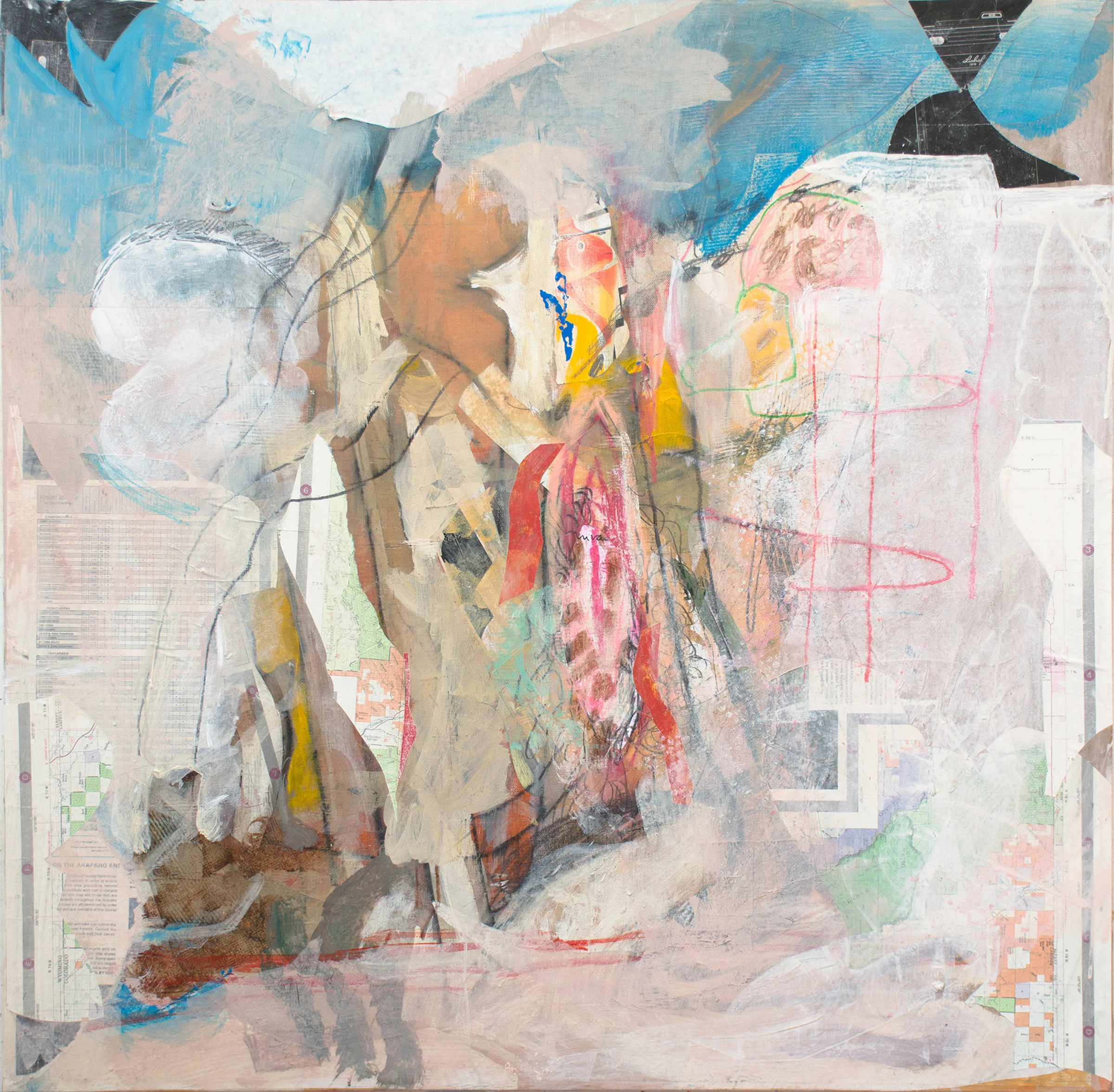 3:45 PM: i attempted to tweak this painting today. there was a moment when it was OK (bottom left) and just needed a bit of work on top. it was all downhill from there until finally, i completely fucked it up. those two stage are shown below. doesn't happen often, but today was one of those rare days when it did. i'm in the process of unstretching it, after which it will go into the trash and i'll stretch a new one and start fresh tomorrow.