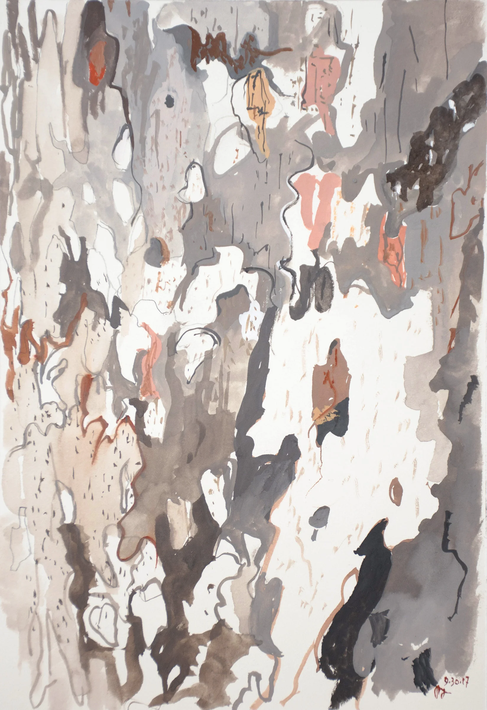 11 AM: recently i've been looking a lot at the work of archile gorky, the armenian-american painter born in armenia as asdanig adoian. i feel a connection to him on many levels, which i can discuss at a later date. for now, lets say there's a lot i have to learn from him. because he too was passionate about imagery derived from natural animal and plant forms, and was able to translate this passion into his well known whimsical/lyrical painterly abstractions, i decided to go beyond just looking at reproductions and attempt a small gouache study of one of my favorite paintings: the limit, painted in 1947 in oil on paper mounted on canvas, 157.5 x 128.9 cm.