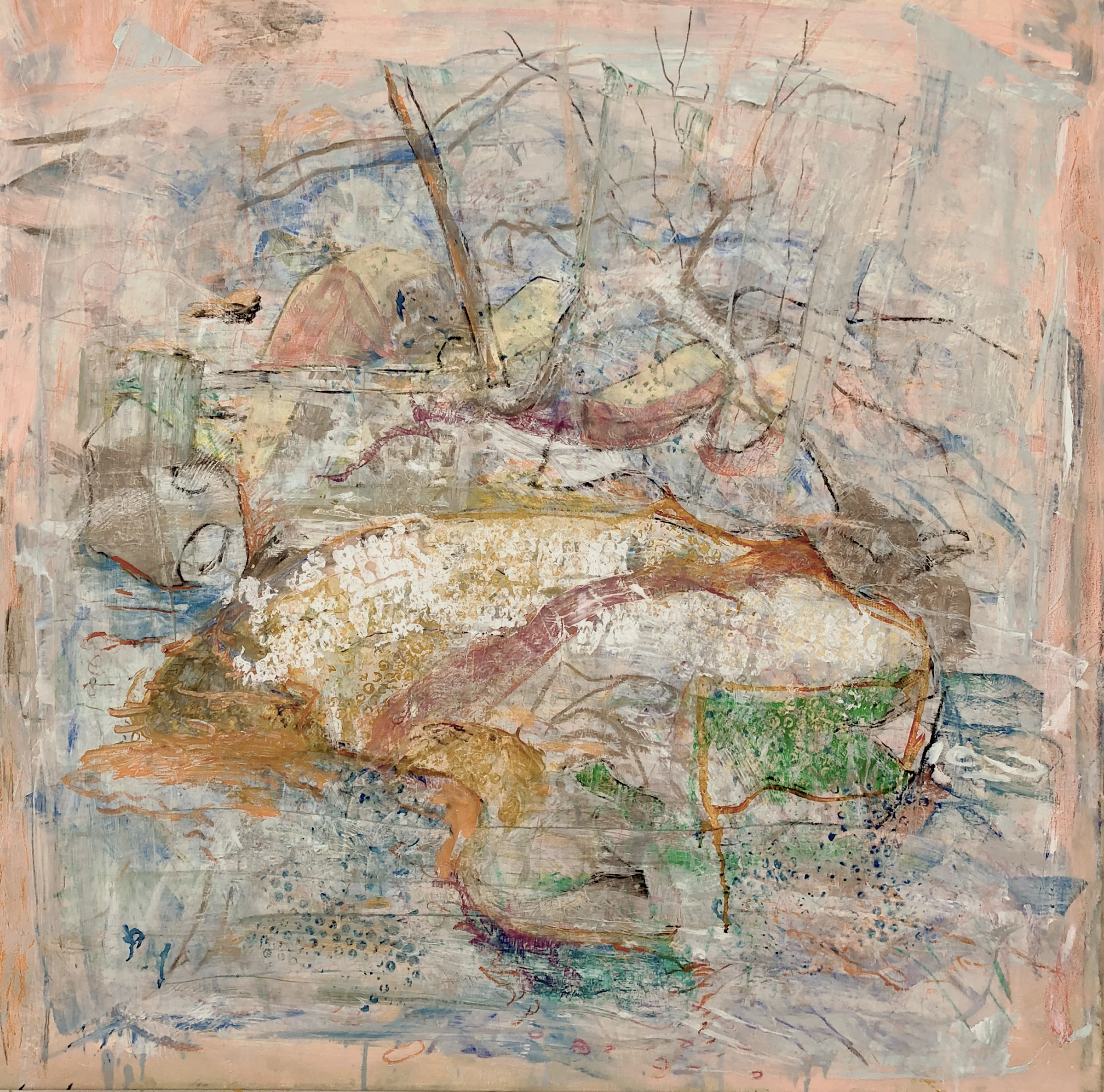 1:11 PM: inspired by my mentee, k., i introduced a bolder energy to roiling today. so thanks, k., i think it’s becoming a stronger painting as a result. lets see how it progresses as i continue work till 3;30, when we’ll take our walk up the creek.