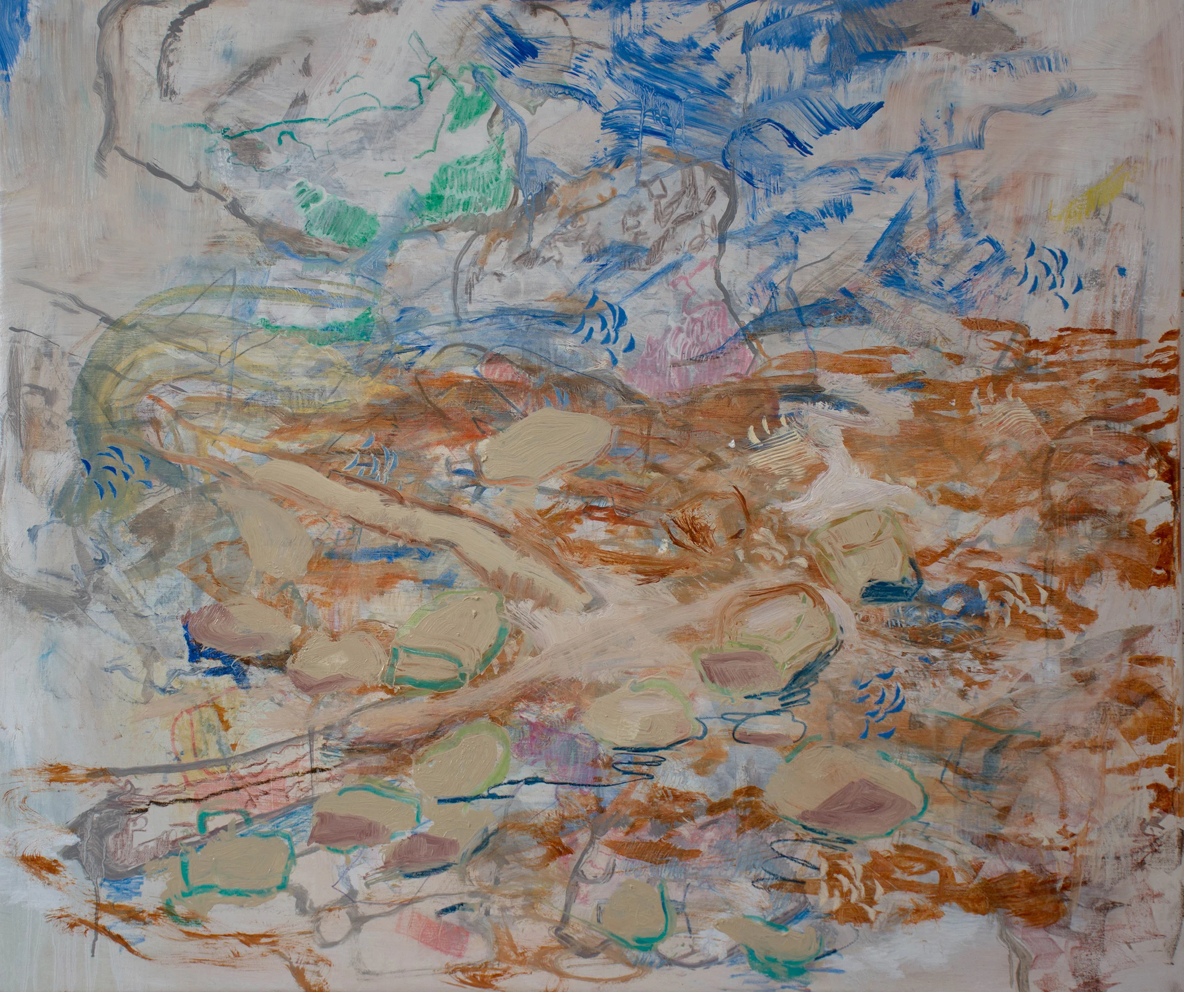 so after spending an hour or so introducing marks derived from the bark of a “dead” tree, which i call a resting tree, i grabbed one of the plein air gouaches i made this past fall and introduced elements i discovered while making that gouache. tree resting responded immediately, activating my painterly instincts, which are always close at hand.