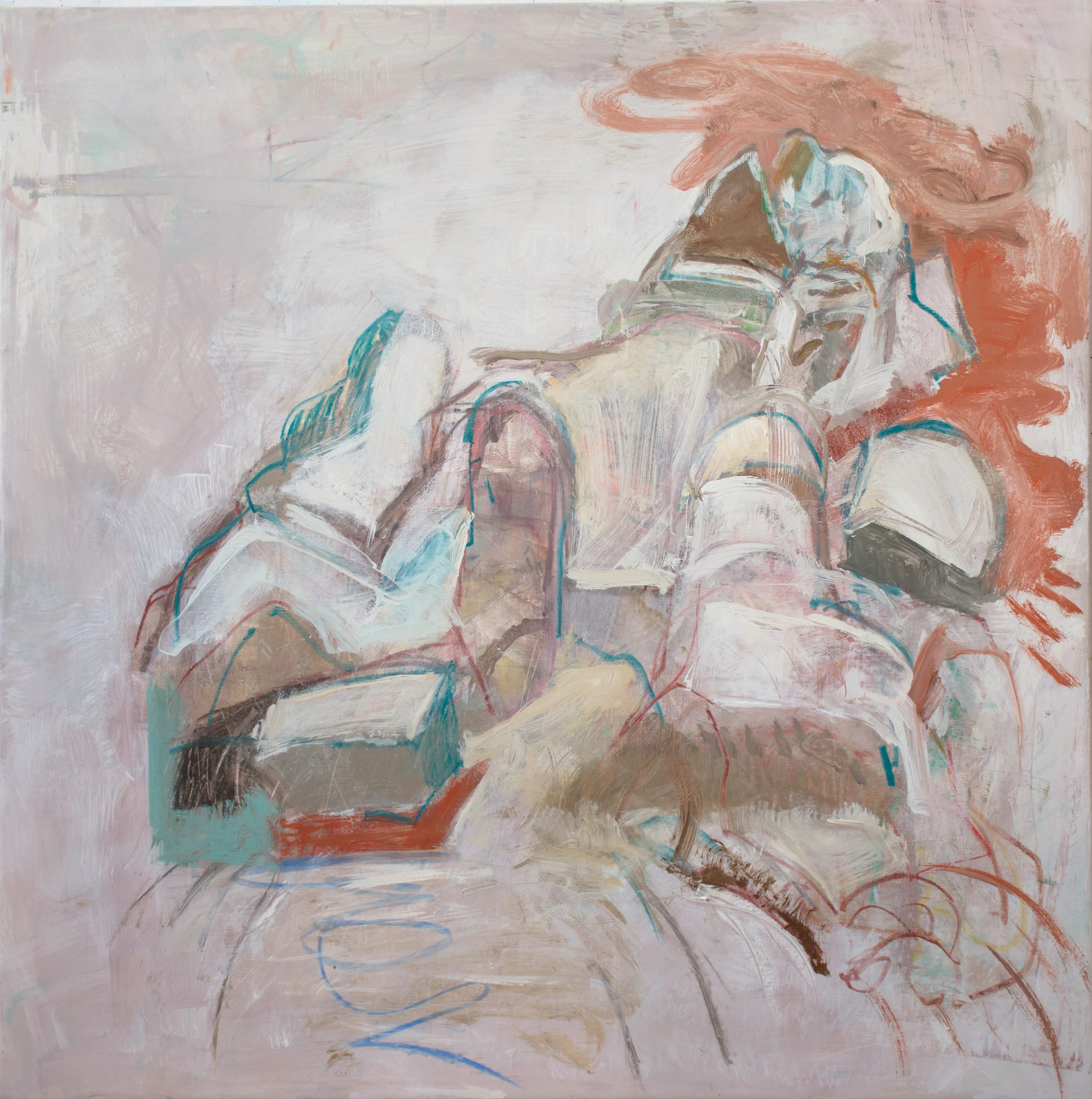 1:15 PM: following 3 very productive and gratifying days of intensive meetings with our actionlab team, i'm back, albeit briefly, in the studio. i'm a bit wacked out still, but i was able to make a small but important, i think, alteration to motion 13. the green bit at the very top kept grabbing my eye, so i did away with it, to the benefit of the entire composition. in addition, you will notice a white line tracing the top of the grey/brown triangle at the top, and a broken white line beneath at the bottom of the grey of the rectangular box-like rock at the bottom left.