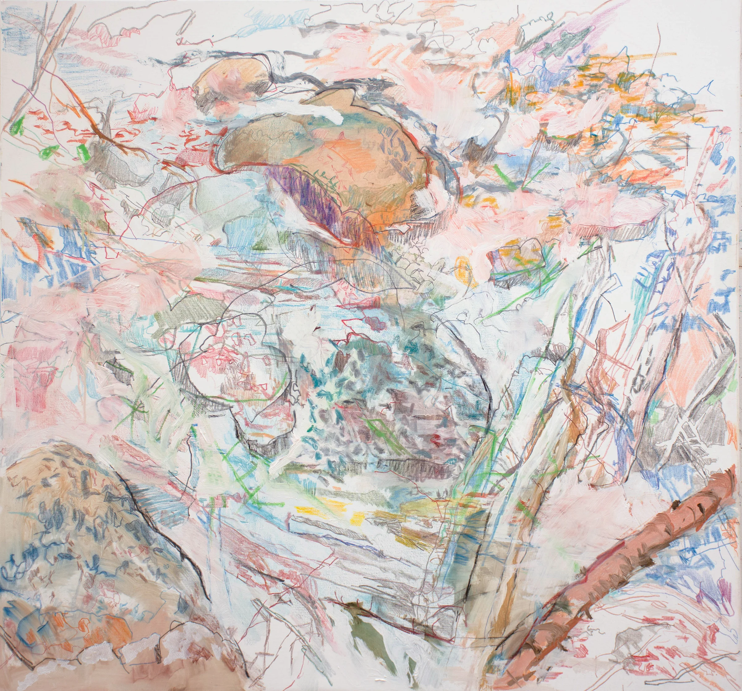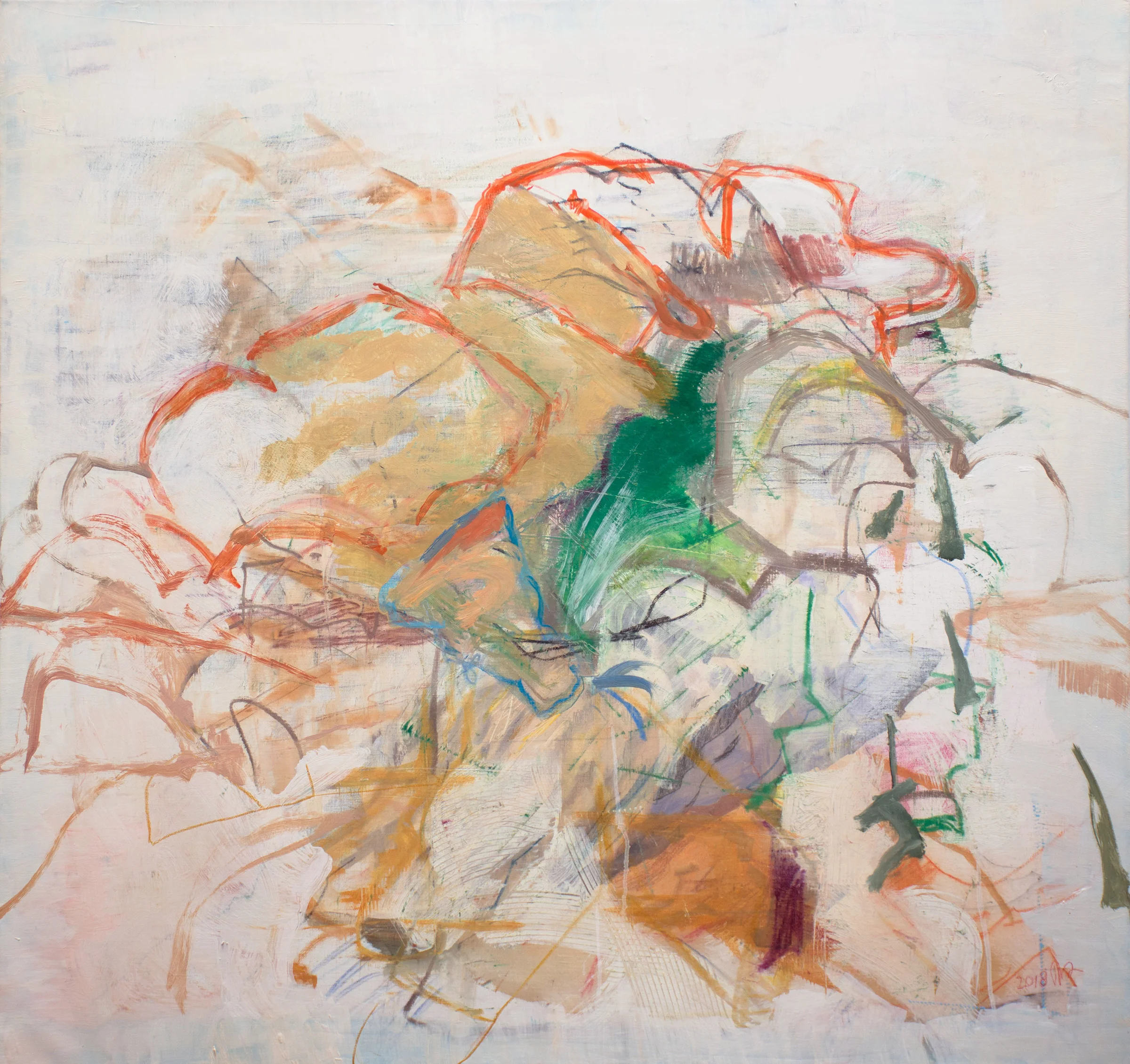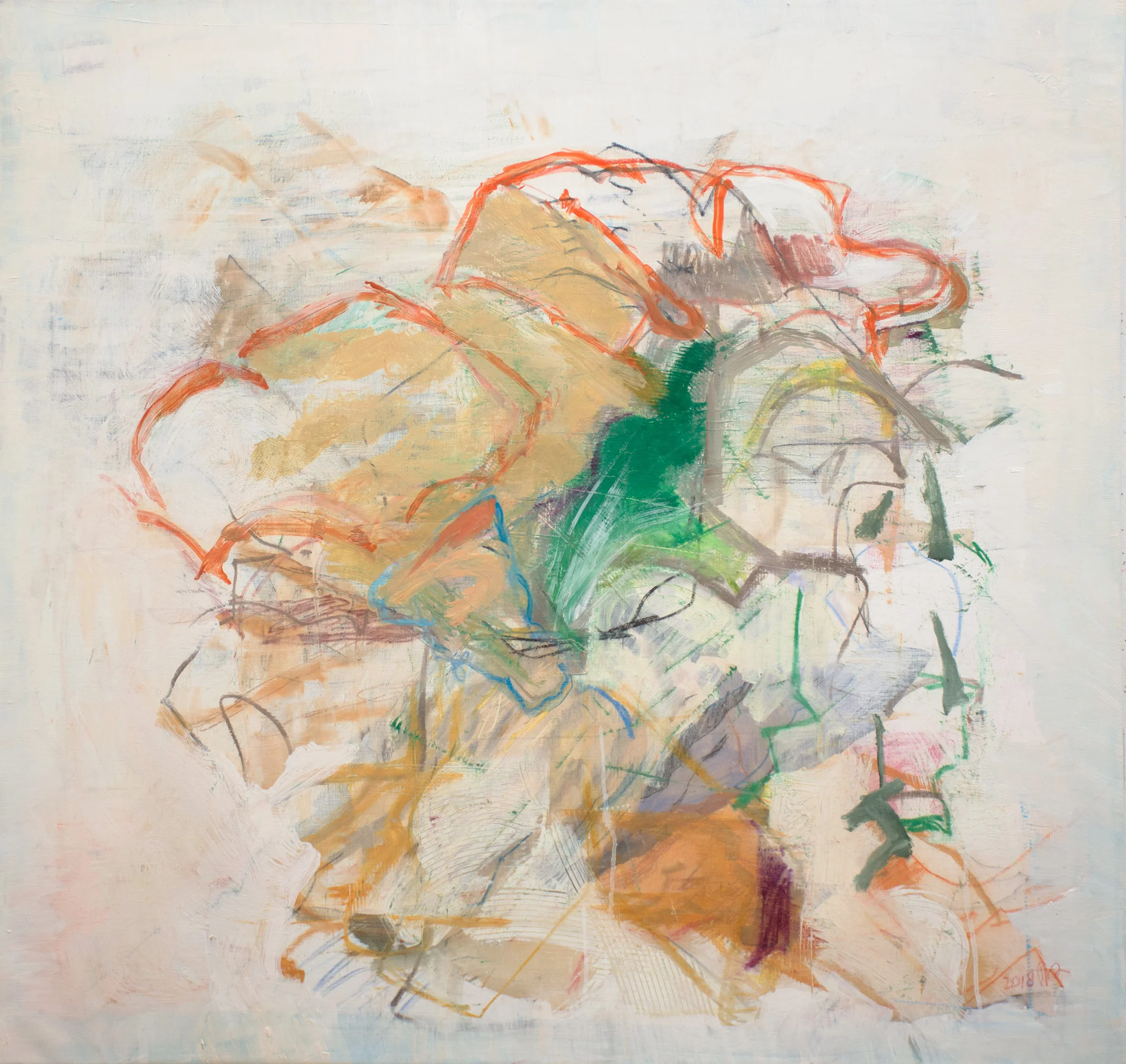 1:43 PM: below are the before & after images of the changes i made to motion 2 this morning. the composition was too centralized & needed to be extended out to the edges of the canvas on the right & left. thanks to mikela's most excellent feedback, this is now a far better painting. notice how the canvas actually seems wider in the image on the right! it's actually the same 36x38" canvas!