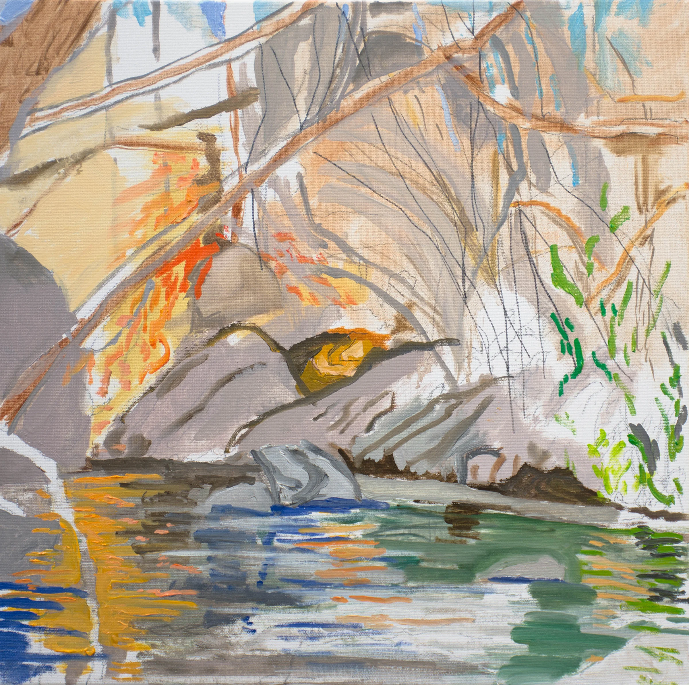 2:22 PM: so here's where it's at right now. i did start departing from the grays, and this is becoming a denser painting than motion 26 & 27, in part as a result of feedback from my son dimitri. he has a very good eye, which i trust.