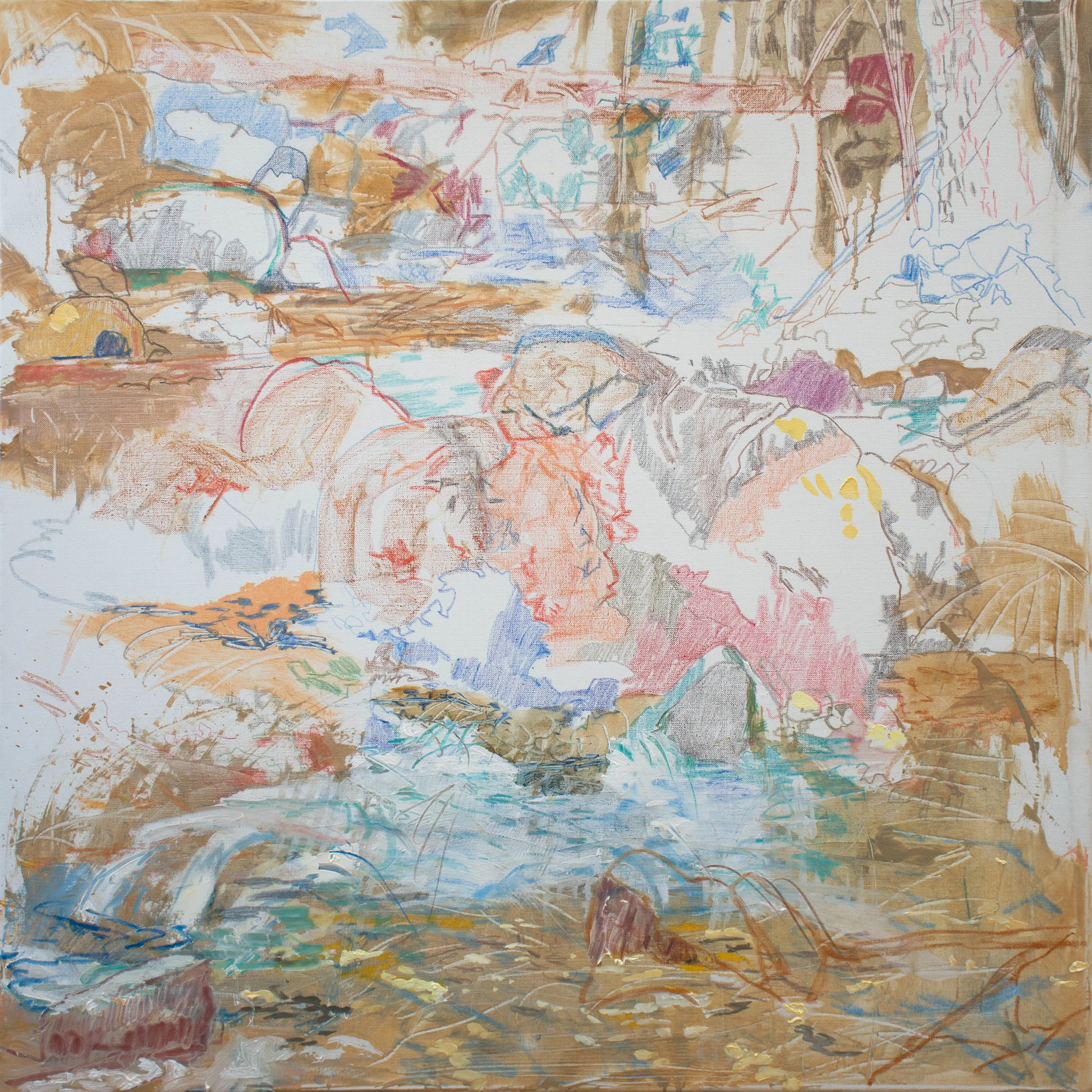 motion 29, 38x38" at it looked at 3:20 pm today; the end of my painting day