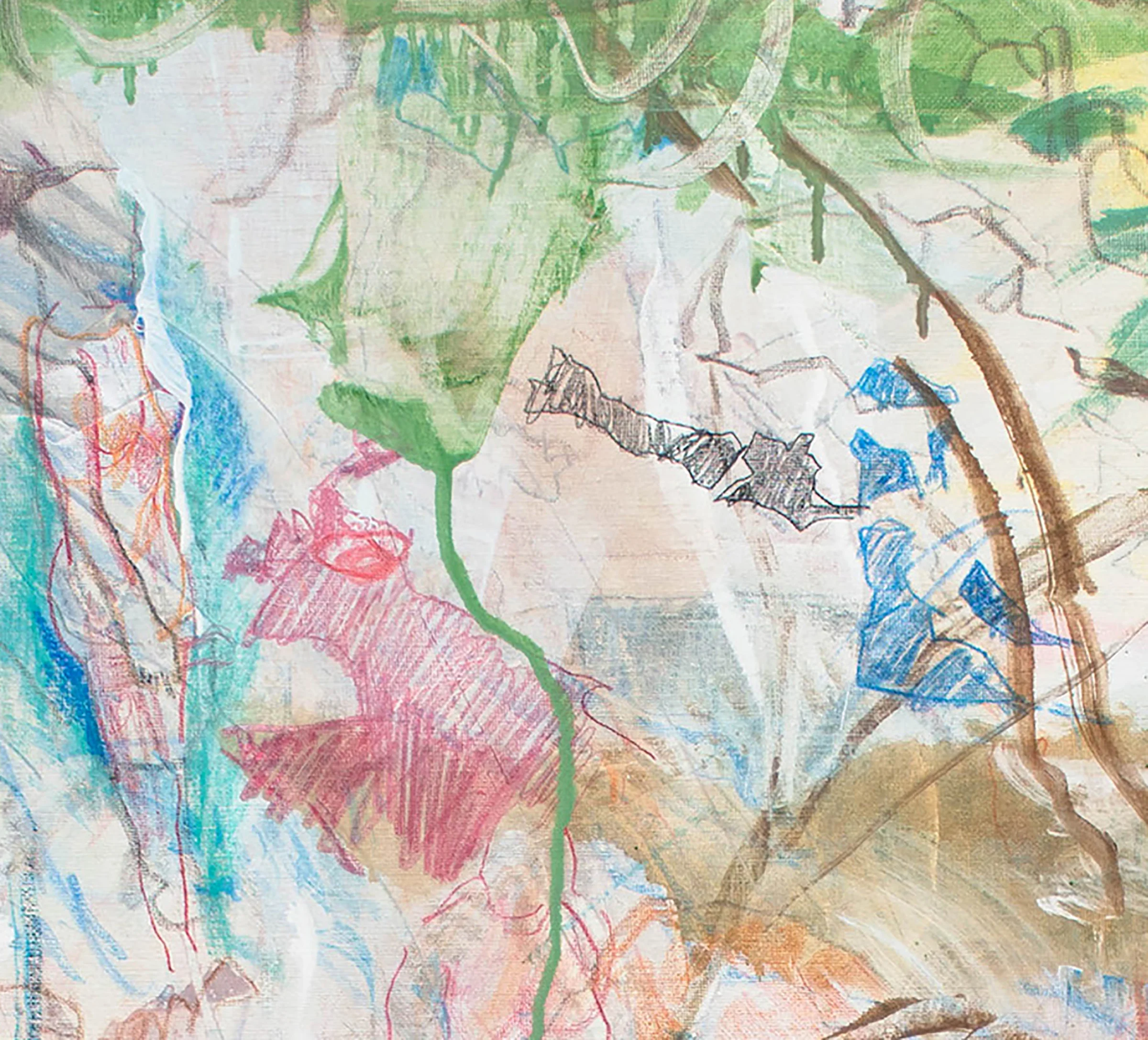 so i introduced that forest green and preserved some of the more compelling, suggestive passages, and now all i can see is a damsel in distress waving hello with her abbreviated paw, and an even more distressed halloween-like face, hair raised in horror. perhaps he's spooked by our pres.