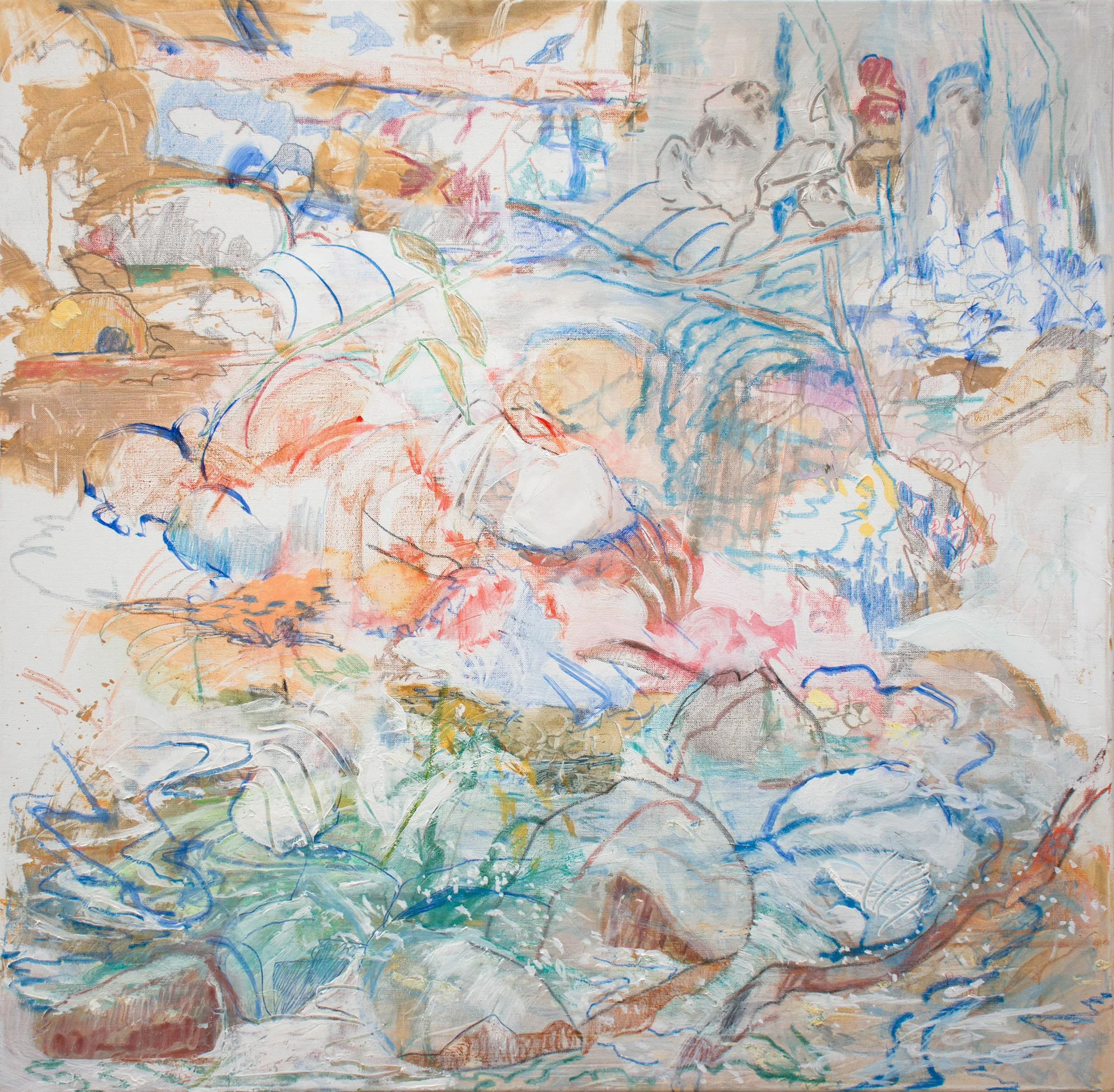 3:08 PM: today was a wacky day, even in my wacky world. i had given up on motion 27 & was going to un-stretch it to scavenge the stretcher bars, but a voice in my head said i should give it another shot. voice in my head? do i need therapy? well, that's kind of the way it works when you are your own boss, right?