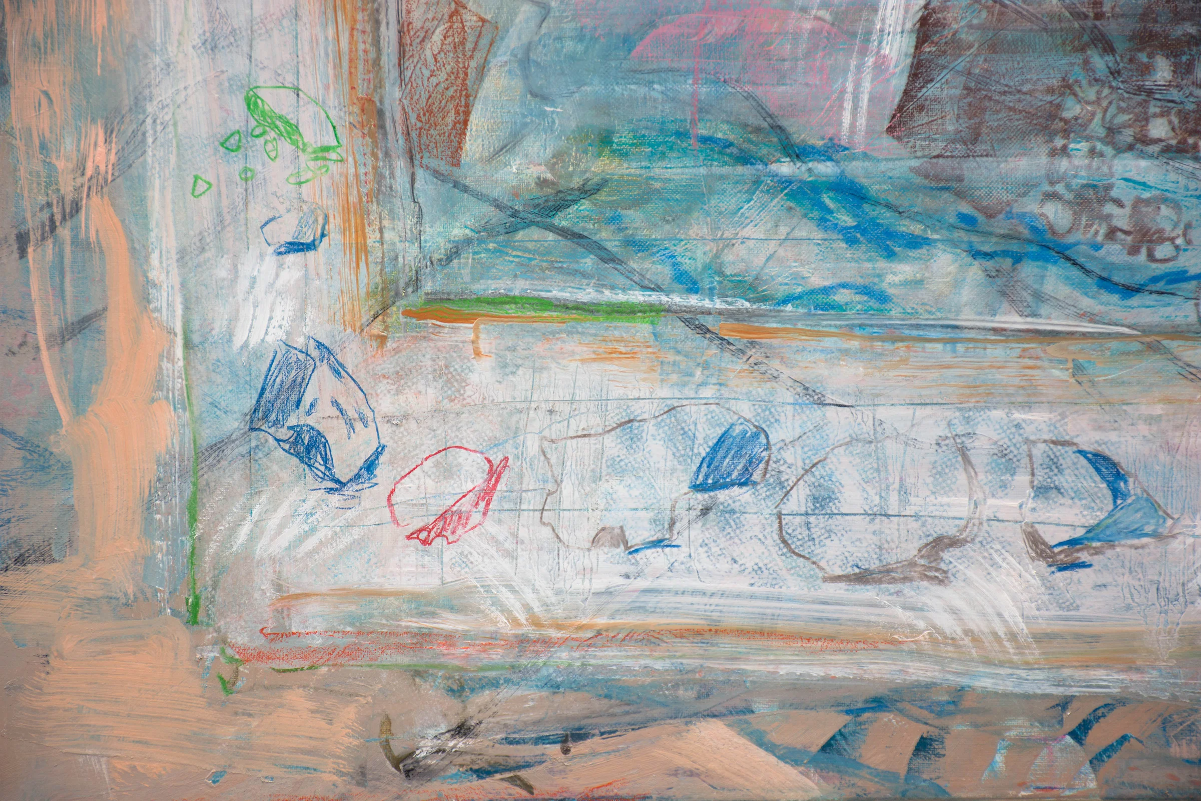 as you can see, it's only partially painted over with white, leaving the painting underneath to show through & creating a juxtaposition of oil paint & oil pastel & crayon.i was just given the green light to send some of these new ones, whichever ones they choose, to gremillion in houston. as you may know, they've been representing my work in houston for over 20 years. so periodically i send images of new work & they choose a selection, which i then sip to them & they begin showing to clients.