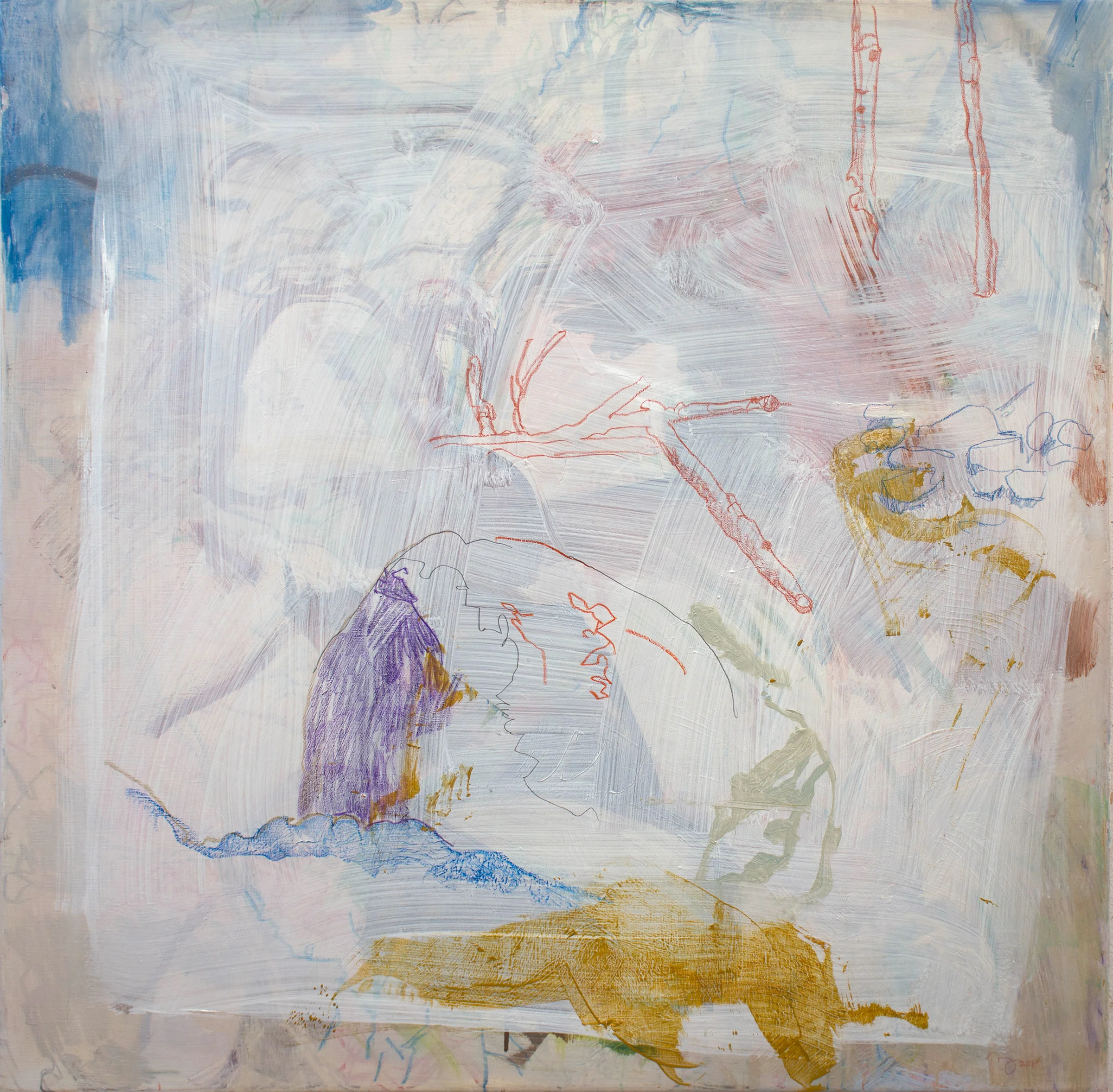 i may leave it in this state as i white over another of the less successful motion series. the object is not to be stuck working on one painting, allowing me to leave it in a state where more is hinted at than fully elaborated upon.
