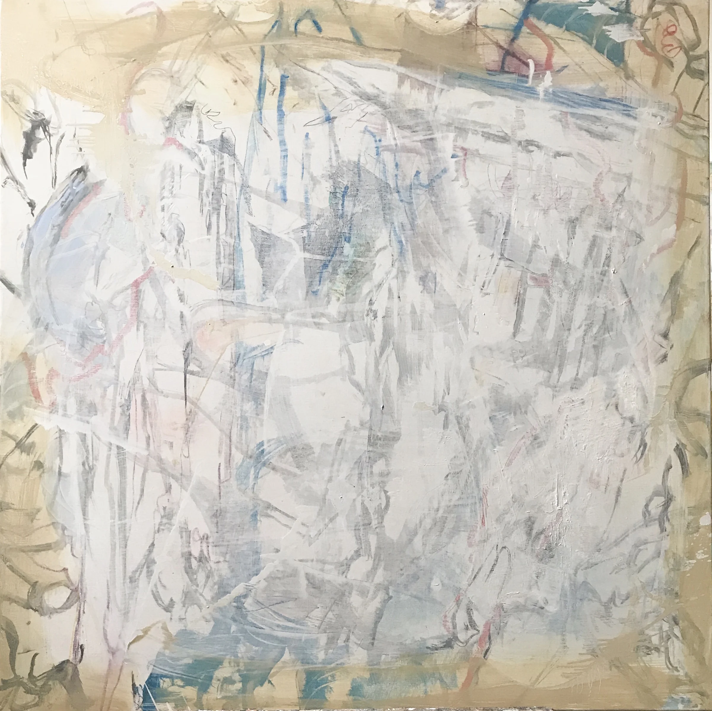 4:36: today was k. day (my 12 year old brilliant mentee) so i stopped at 2:20. i returned with fresh vigor to purple rock (don't you find it nicer that the paintings to have names rather than numbers?) iwhat i did was very little, very subtle. it's a delicate surface but it does read from where i'm sitting, about 25 feet distance. the whole thing has a pastel ring to it, yet it still has it's bones. i'm starting to thing this frequent travel schedule, due to political events we need to attend in different parts of the state, is beneficial to my work. it allows for a fresh eye.