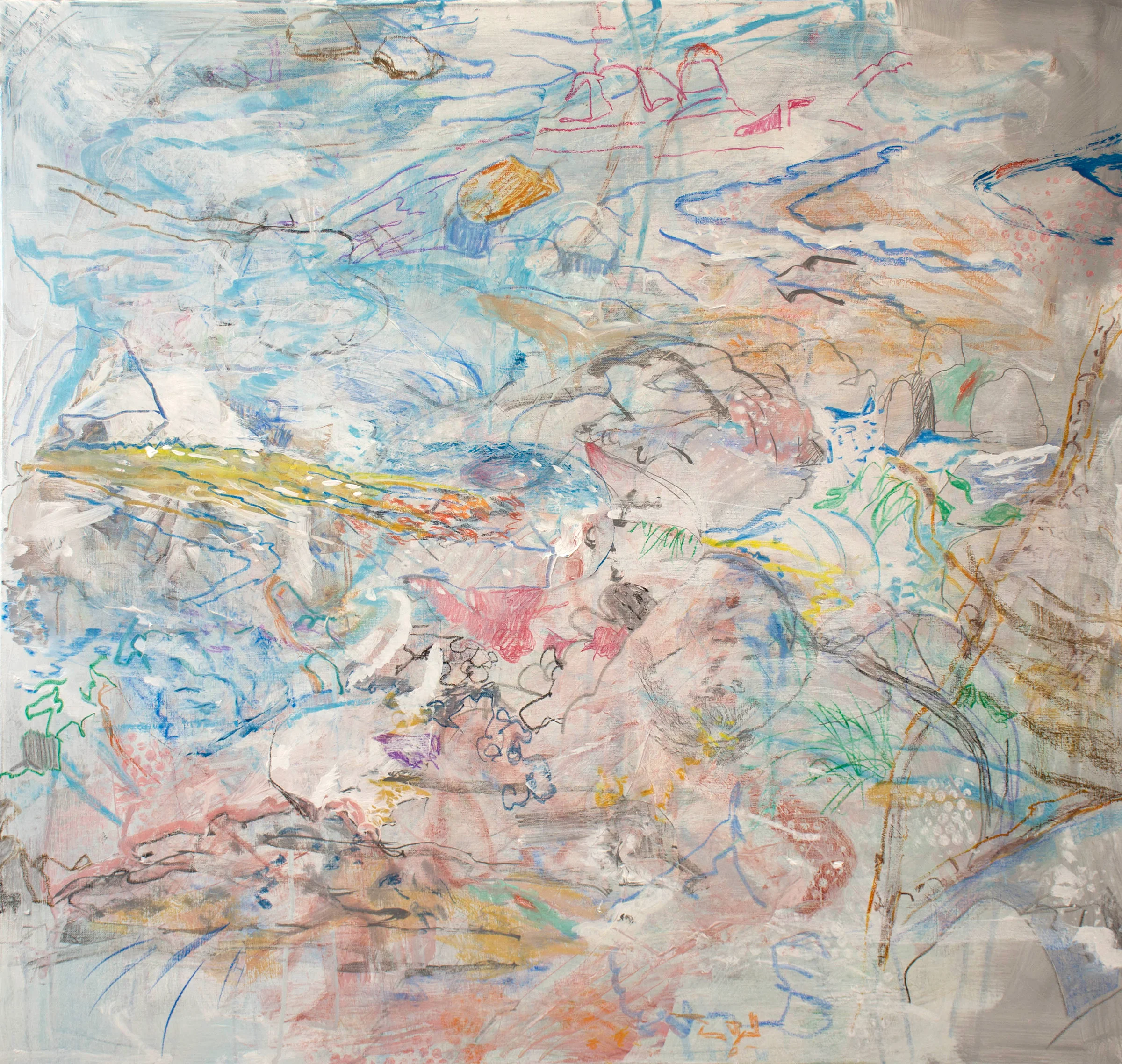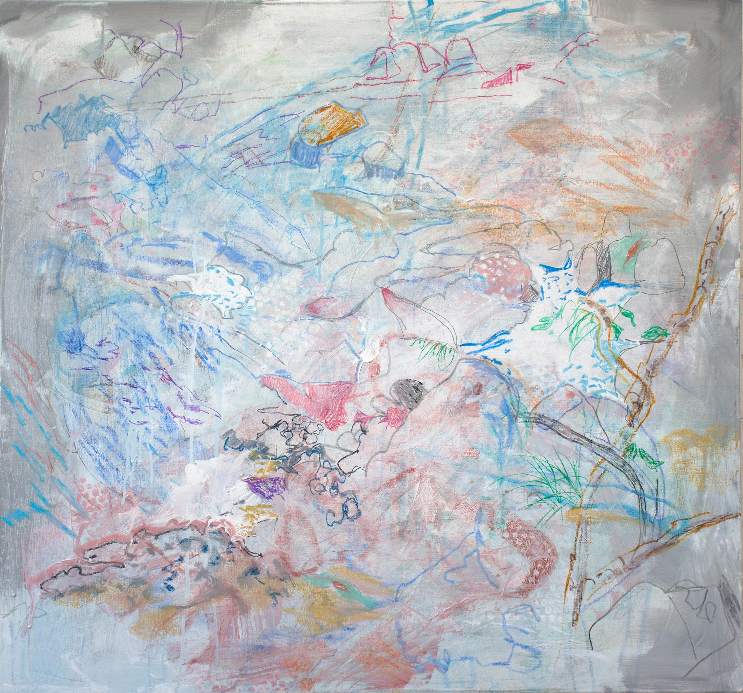 11:13 AM: i'm leaving my re-work of motion 16 for the moment & returning to the recently whited over motion 17. i was in a drawing mood, so i worked into it mostly with dark drey with accents of blue & a tad of pinkish violet & siena. i'm going to keep at it as long as i have my fresh morning energy.