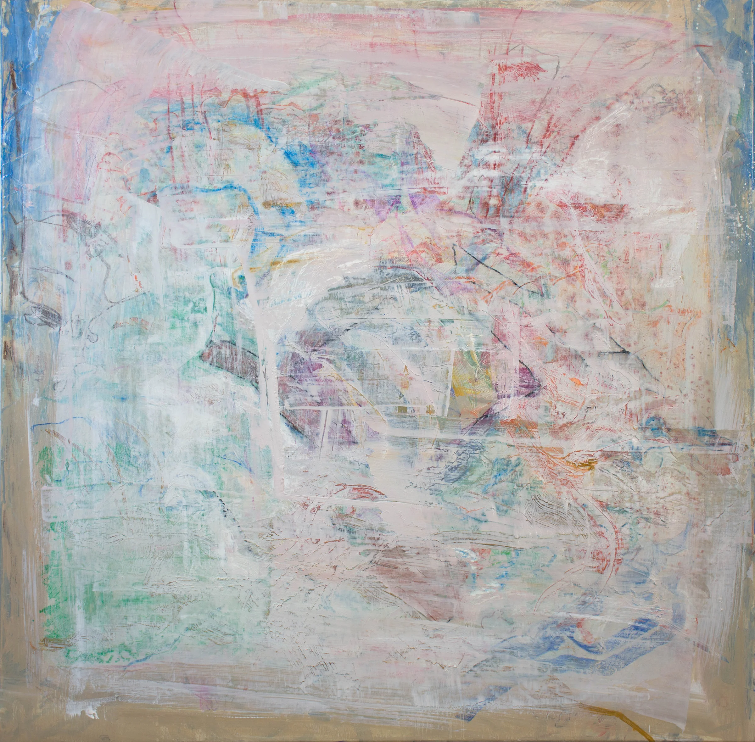 2:54 PM: today upon entering my studio, all the paintings but one that i’ve been working on seemed far too busy & loud. so i whited over 3, being careful to allow just enough of the previous layers to show though and giving me the surface i desired. i don’t know how much my current blurred vision has to do with it, but what seemed perfectly Ok one day seems like it’s screaming it’s head off the next. this morning before my meditation we both looked at purple rock, which you see here on the right, and it seemed just the right balance. so right now at least, that’s my vision for works to be hung in my may, 2019 space gallery show in denver.