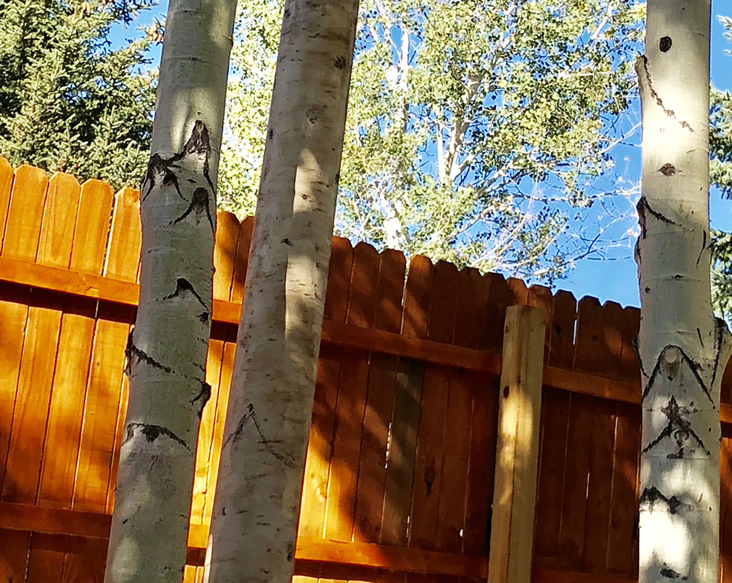 when dan & i are together, we do projects focused around his house. we painted a tall hollow pole destined to support the overhead outdoor heater over his porch. it stands next to 3 aspen trees, so we made it look like an aspen trunk. .