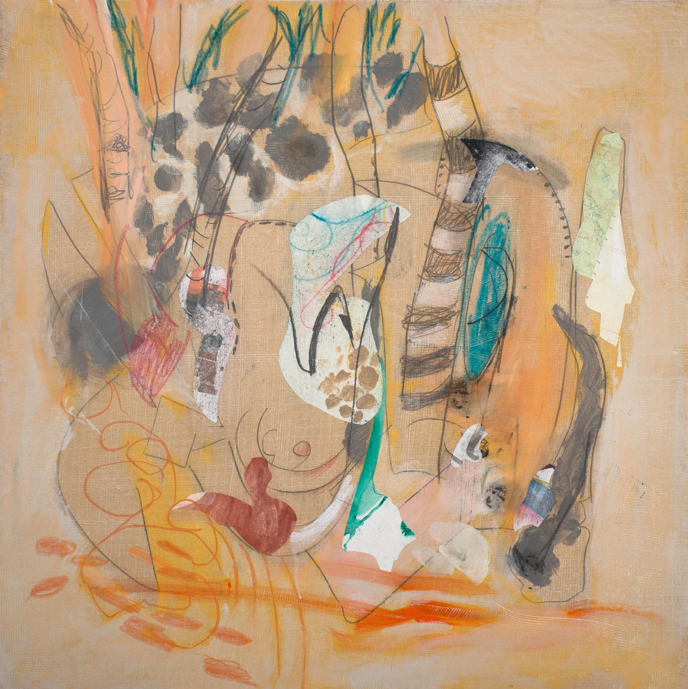 11:16 AM: this is a painting/collage titled fall, which i made in september, 2018. on the left,one of the drawings on canvas for this painting, made in 9/17, and on the right, the finished piece. at that time i was engaged in creating abstracted landscapes, using as a prototype the many plain air gouache paintings i was making at n. crestone creek. references to trees, grasses and water can be discerned here, as i search for a language of marks, colors and forms that reflect my experience of the creek-scape i would immerse myself in for about 2 hours at a time.