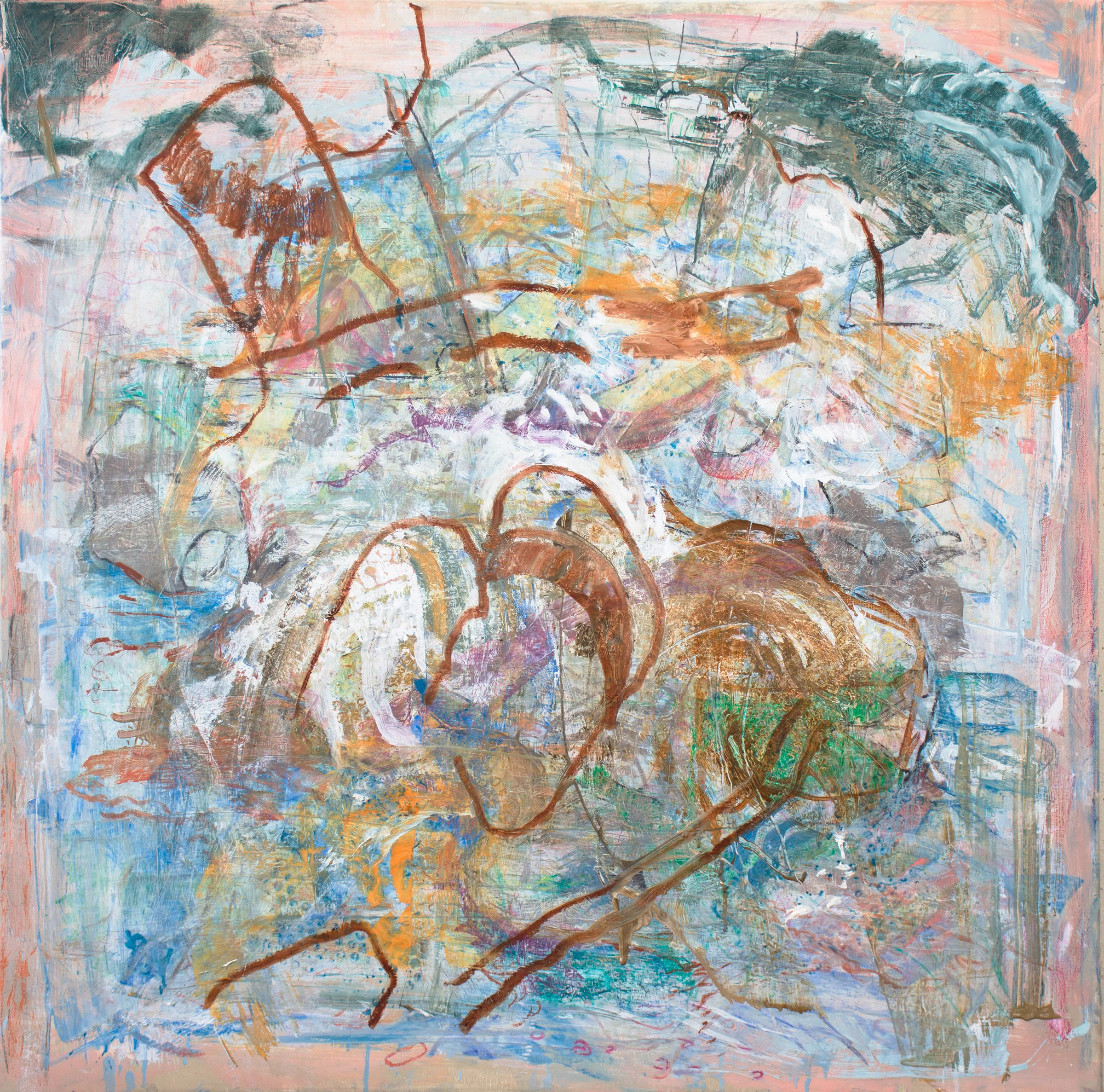 roiling, 38x36” mixed media on canvas as it looked after my revisions yesterday morning
