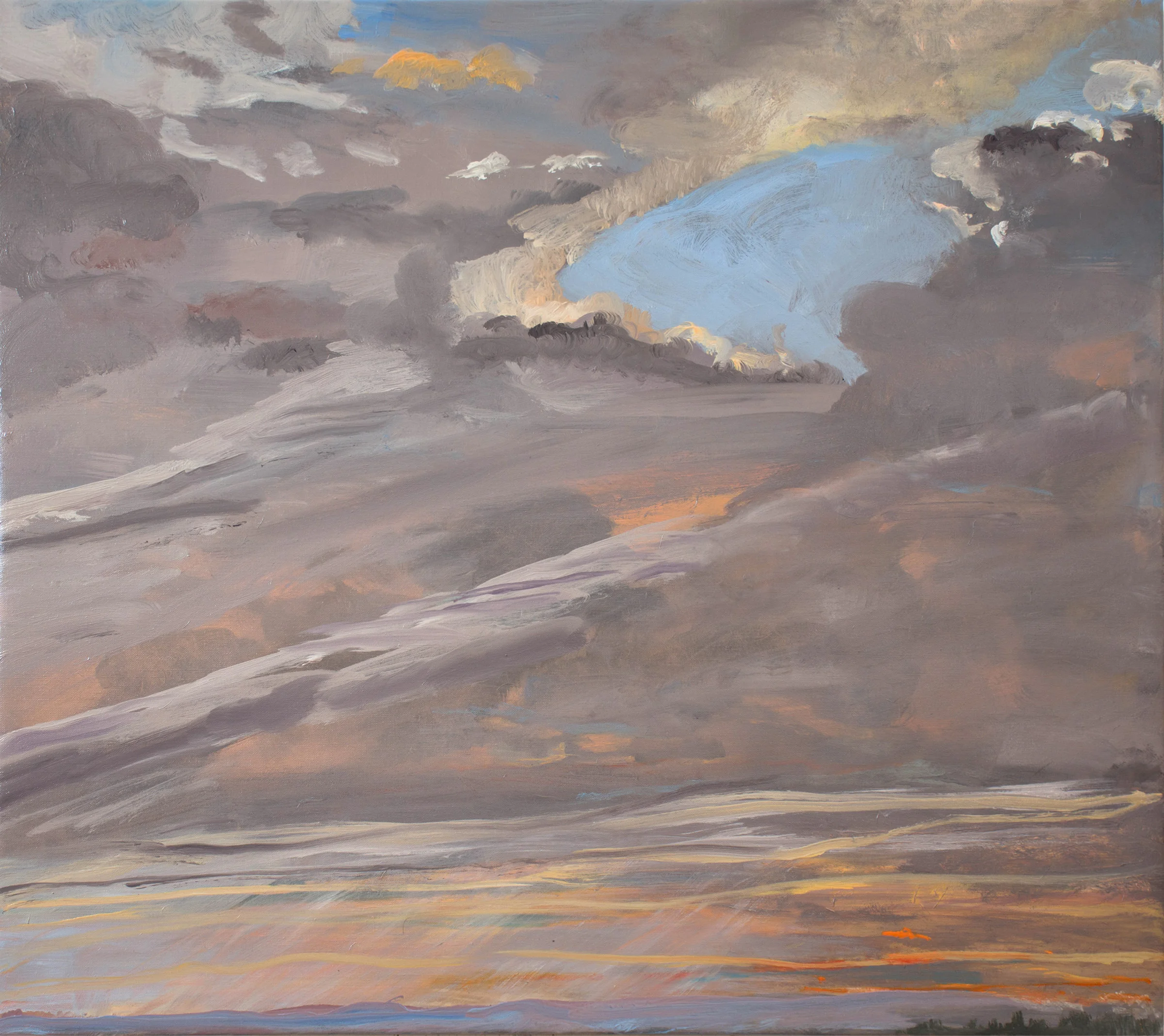in any event, i made, yet again, radical changes. one thing i definitely did accomplish is that it no longer looks like 2 separate paintings. i opened my studio door and looked carefully at the landscape, which happens to be the one this painting was inspired by. i shot this photo, which is actually not that far from the sky i’m attempting to paint. this actually helped me in creating more of a united, coherent image, which is what i see now looking at it on my studio wall. tomorrow morning will, as always, tell the story. right now i’m totally wiped out. we’re expecting dinner guests, so i’ll clean up & get back to the house to help out.