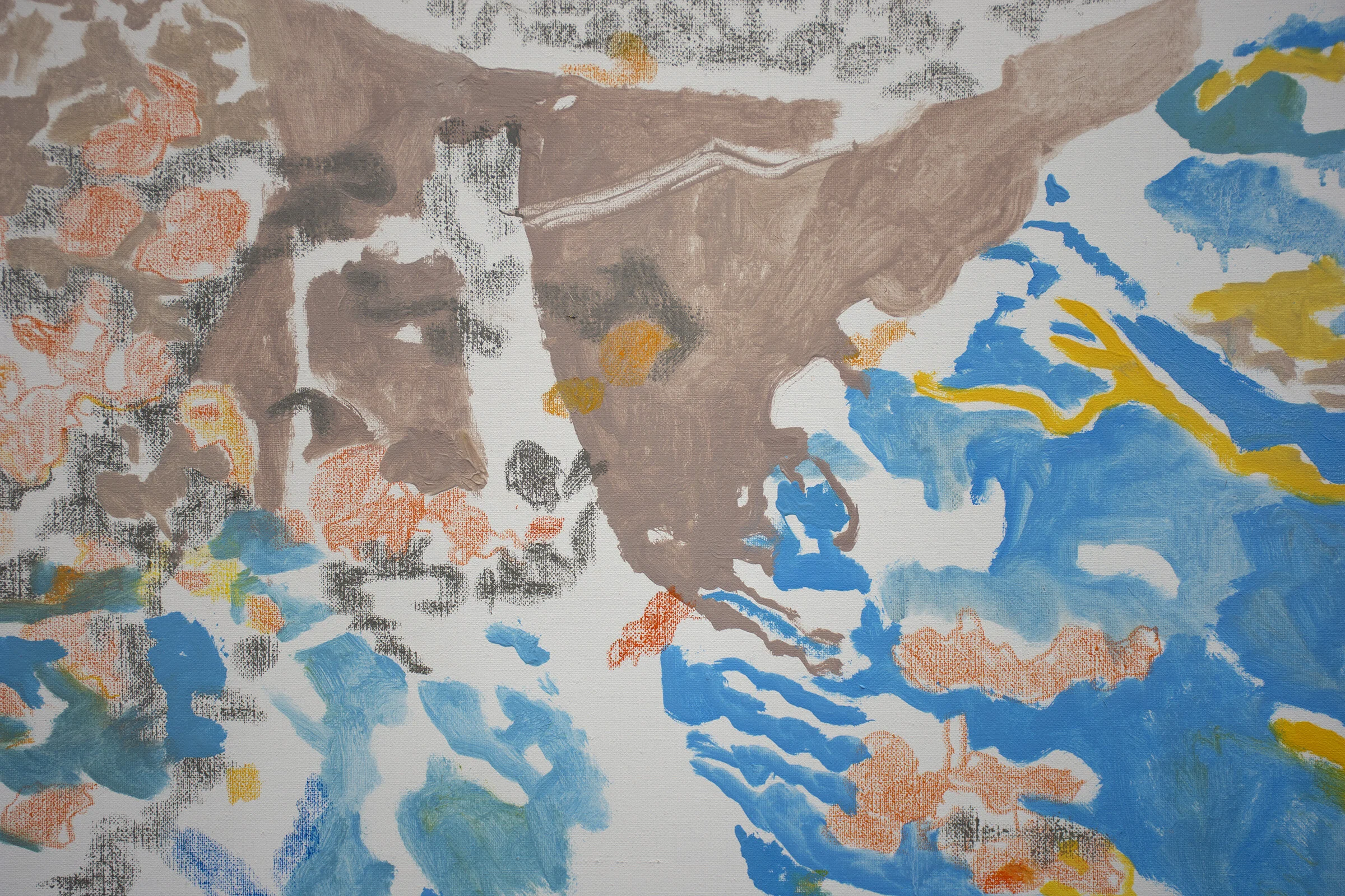2:31 PM: I resumed work this morning on il torrente. my first energy is keenest, as always. my initial impetus to make paintings reflecting both macro & normal distance; details of lichen living alongside or superimposed upon the rocks, branches & water we see on our creek walks.