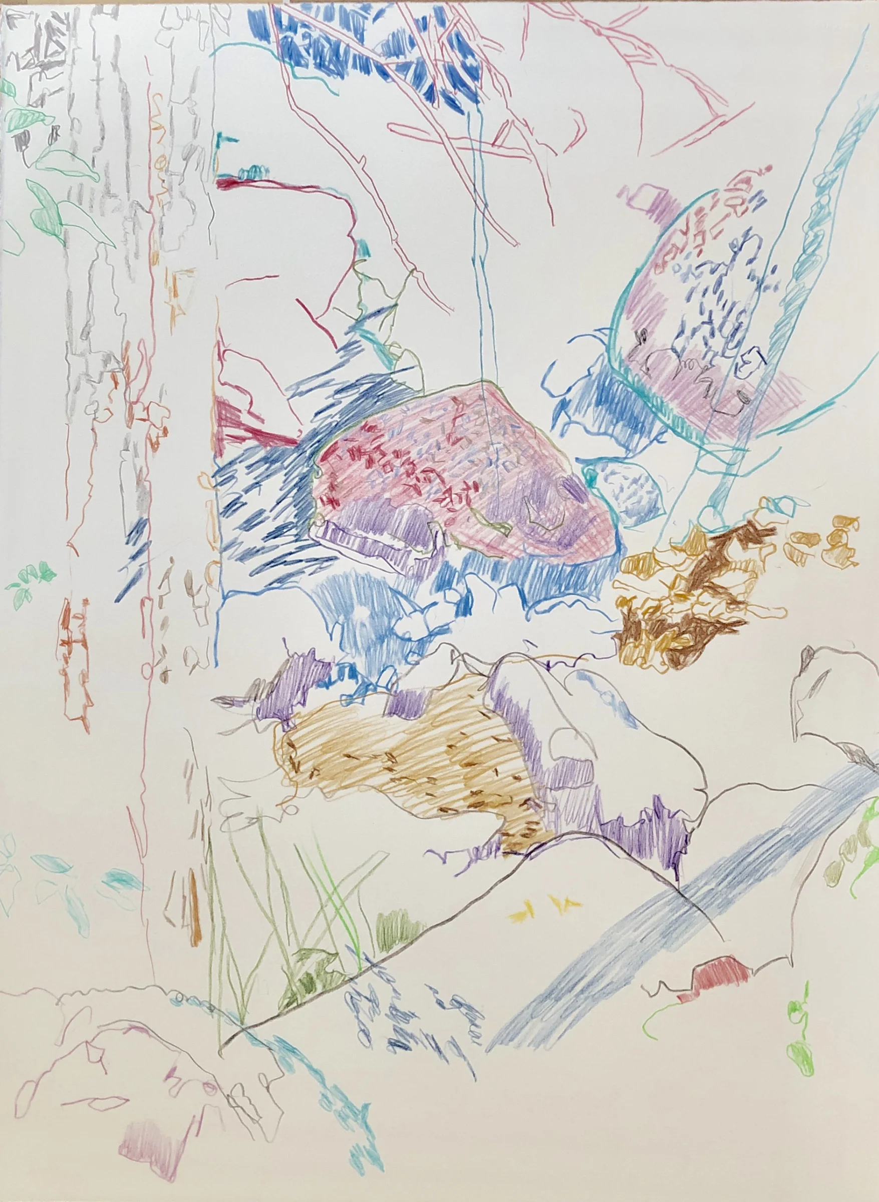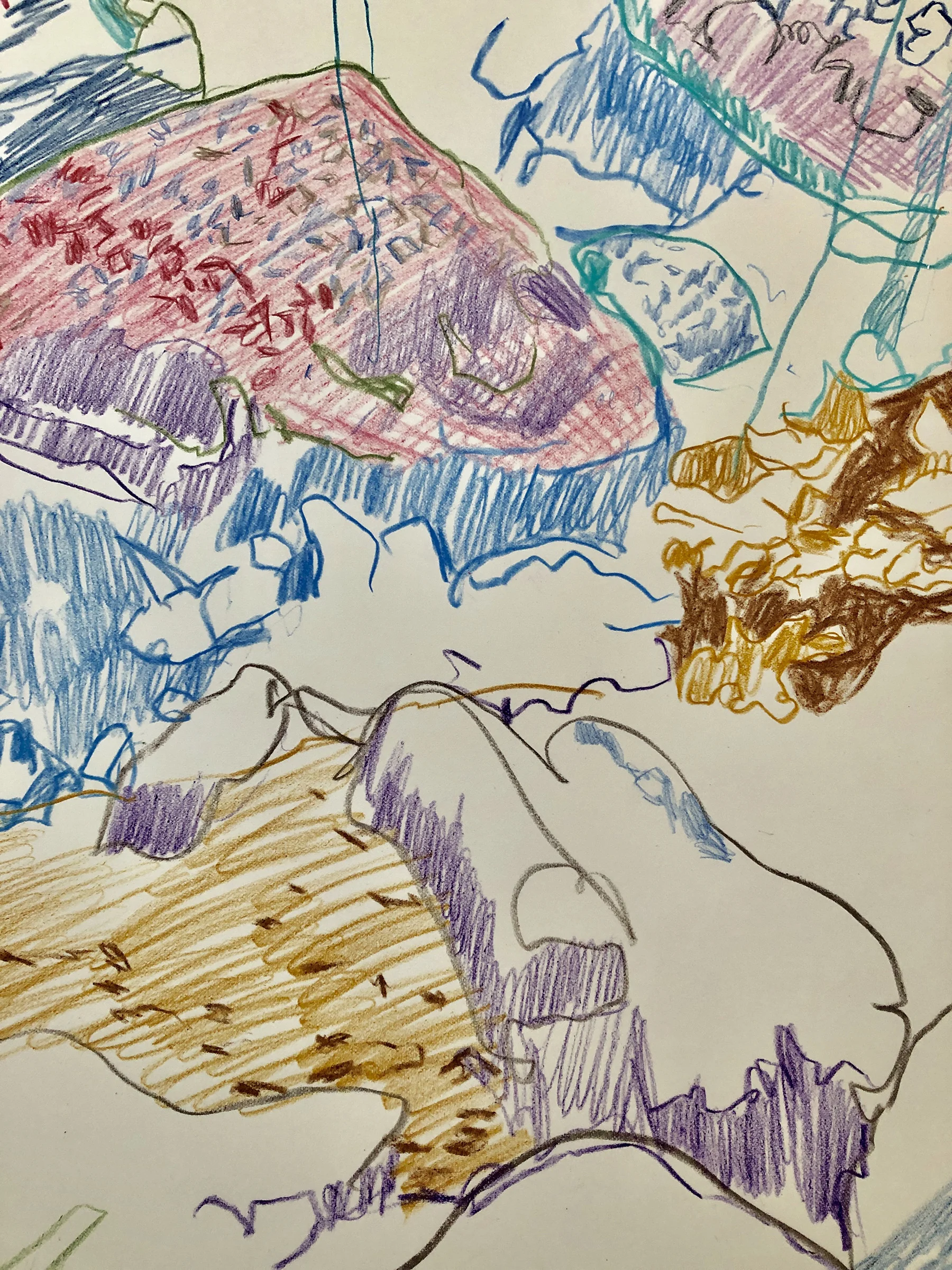 i got the second of two shingles vaccinations on wednesday and, as predicted my arm is swollen & i’m feeling achy & off. so i was only able to work on the drawing for a short time. below you see the changes from the 2/4 version, on the left to todays additions, on the right. assuming i feel better by tomorrow, i may be able to take it further & complete this drawing, and continue work on my vertical scroll project. the unprimed linen should arrive mid-week, so i can begin cutting 84” high strips & experimenting.