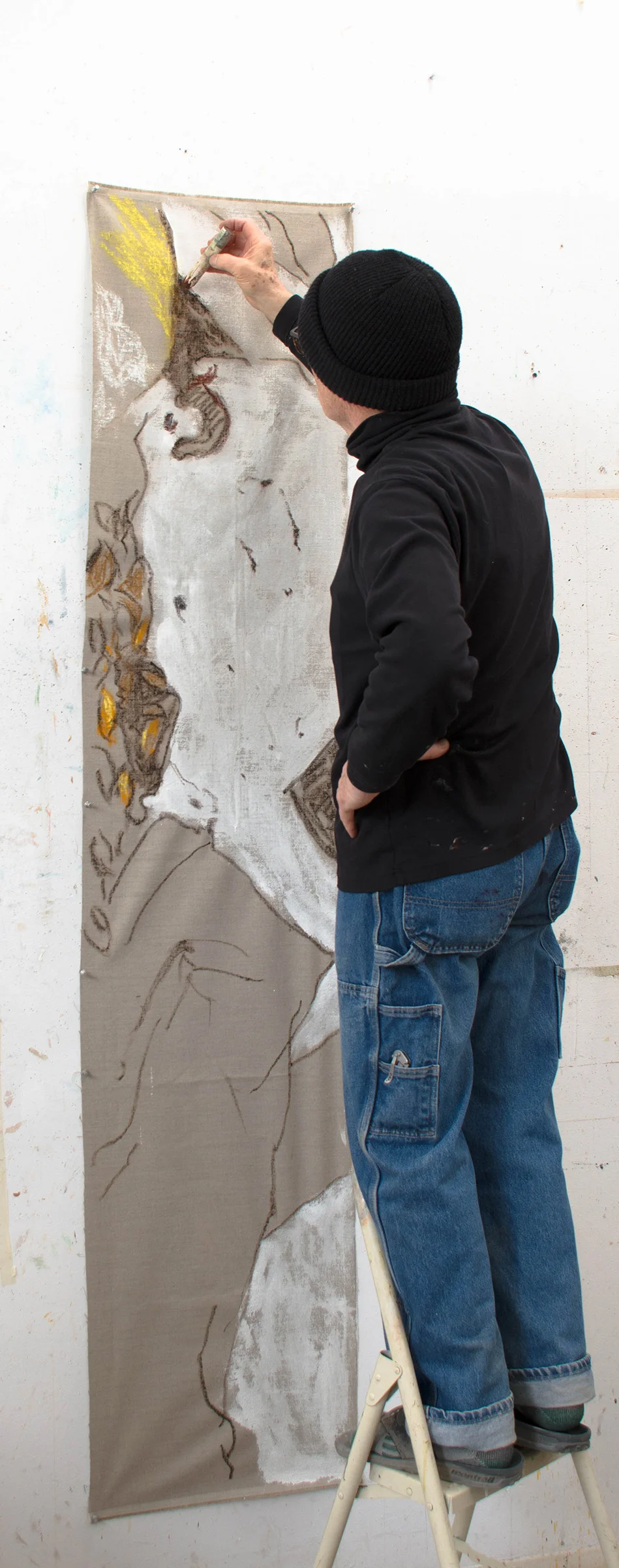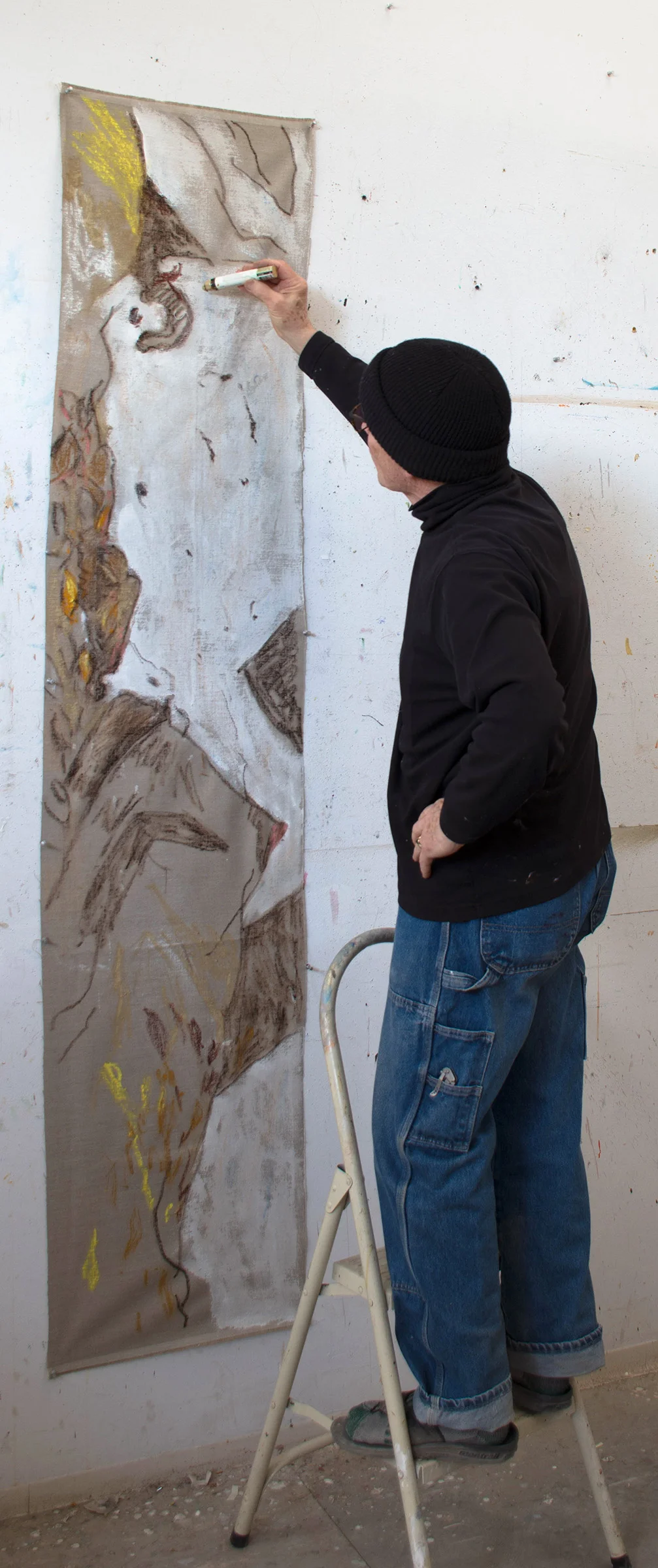 12:11 AM: this morning i decided to launch straight into the first of 4 scrolls, using gesso & oil sticks.