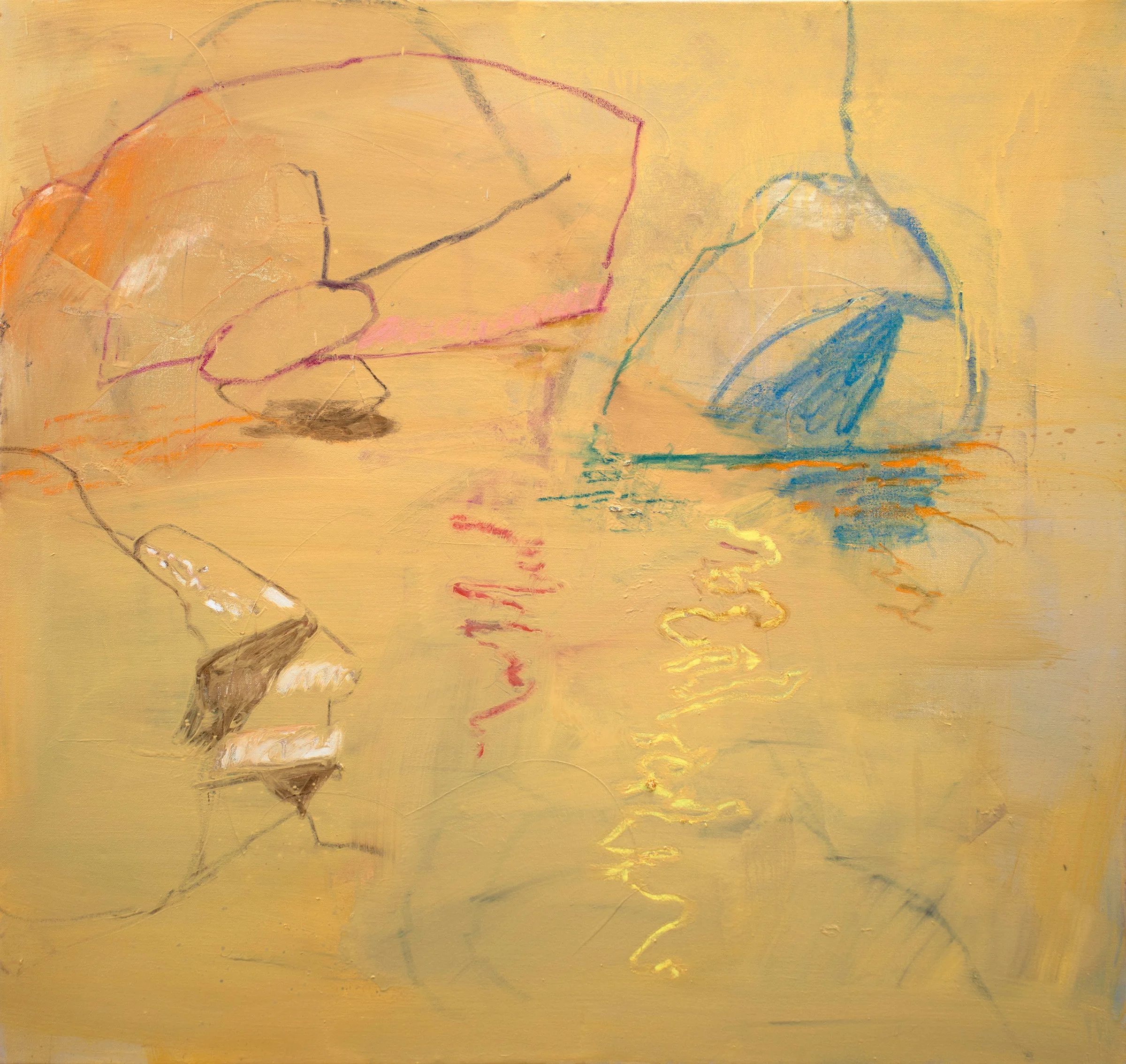 1:51 PM: the painting titled durango, (36x38”), had already undergone a radical transformation, and i can’t seem to find an image of it as it looked just before starting work today. thus far, since this morning it has gone through 4 stages, which can be seen below, with the earliest on the left.