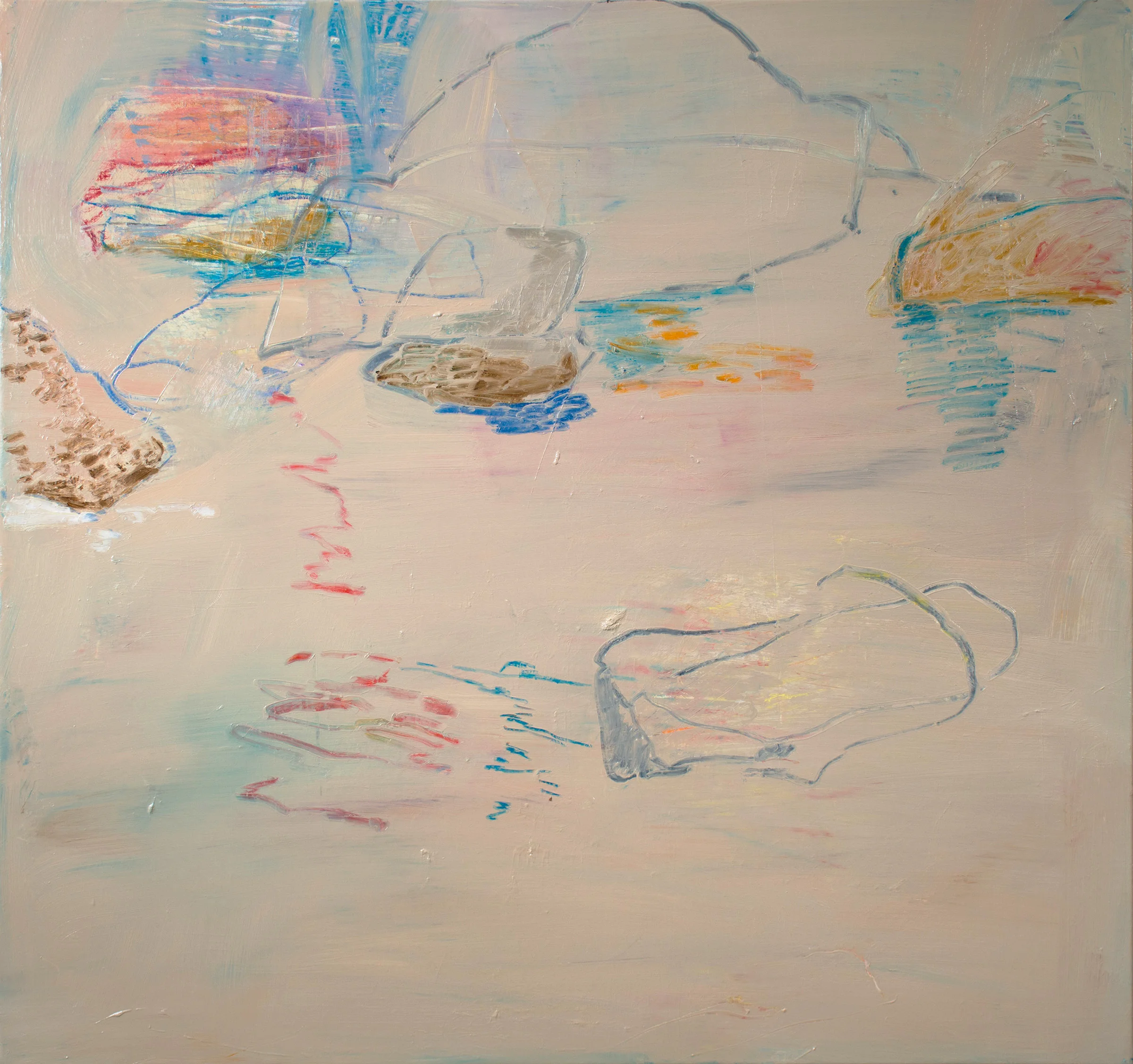 1:50 PM: purple rock II did not pass the essential first glance test when i walked in this morning, so i’ve been making more revisions. i haven’t been using black at all in this series, so my choice to include it today may be temporary. or i may tone it down so much that it no longer reads as black.