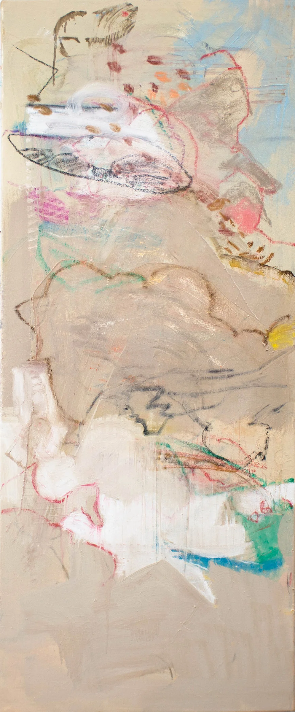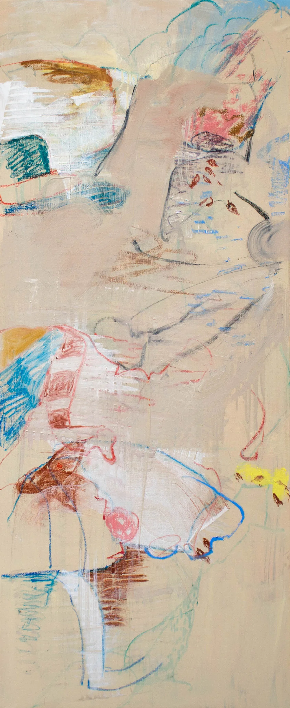 2:01 PM: following yesterday mornings brief, very productive burst of energy working on motion 25, i was inspired to revisit windy creek & easter creek, both 48x20.” i last worked on them on april 30th, which seems way long ago. i was pretty happy with the results, & ready to declare them resolved. as you know if you are a regular visitor to this blog, nothing is resolved until it leaves my studio, either for an exhibition or a new home somewhere. marks beget marks; discoveries beget discoveries. changes are especially likely just after photographic the piece, or just as i’m about to walk out the door to return home. the mind, as matisse has often noted, is atricky thing. ready to impose order at the drop of a hat. opinionated as a MF. a dictator at best, a destroyer of inspiration at worst. alas, where would we all be without her?