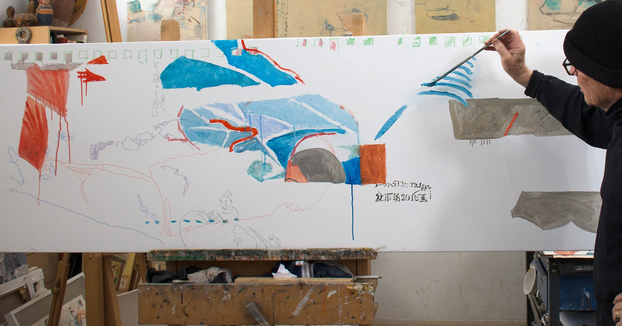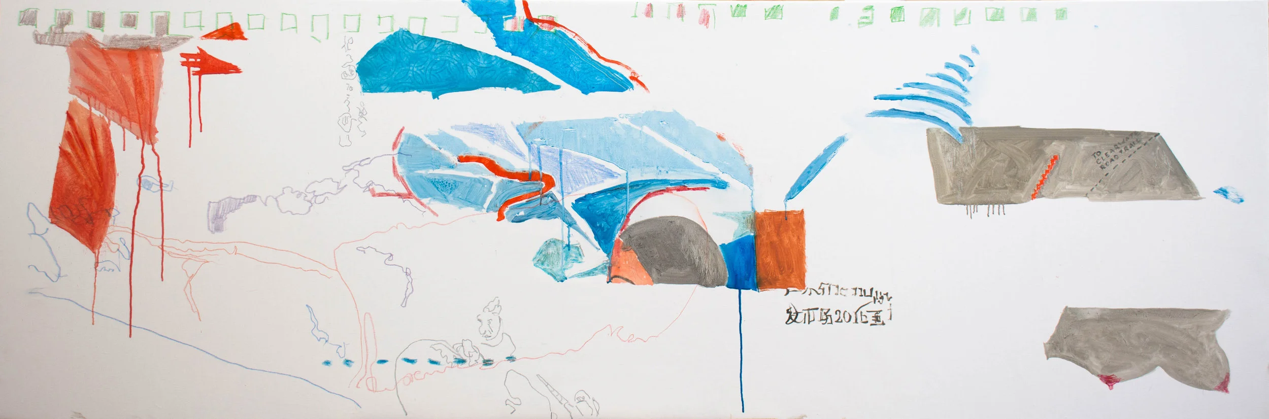 2:45 PM: i was moved to start this rather large, for me, canvas by doing a riff on two of my 2015 collages, knowing me, it will likely morph as soon as we return form our short trip. for the moment, it’s a shift in my energy, which i needed after painting all those rocks! there is great joy in painting on a freshly stretched piece of french portrait linen, which accepts the brush like a true lover. we’ll see what happens on saturday, when i’m back in my studio.