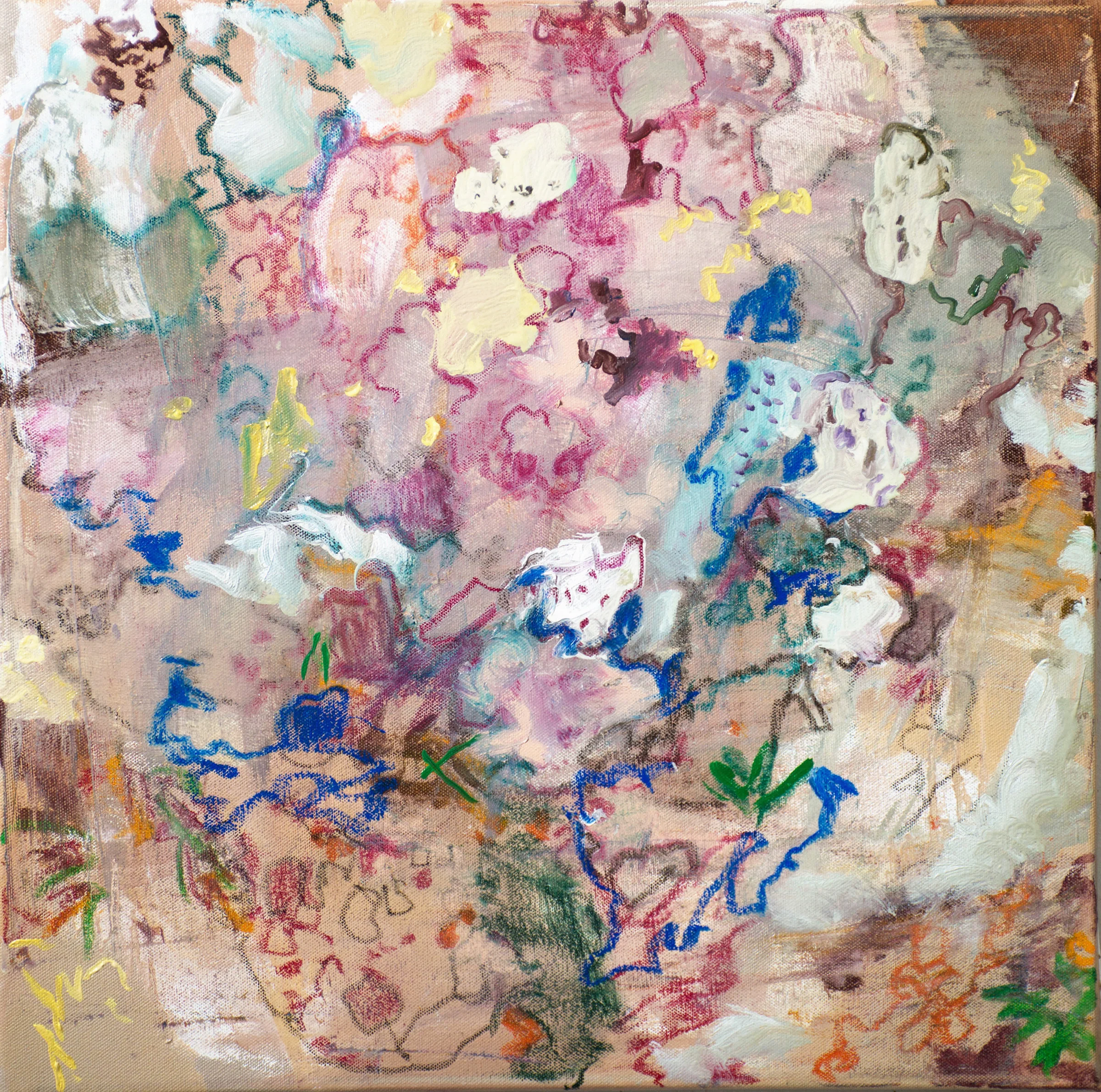DETAIL of lichen, 20x20” at the end of my painting day