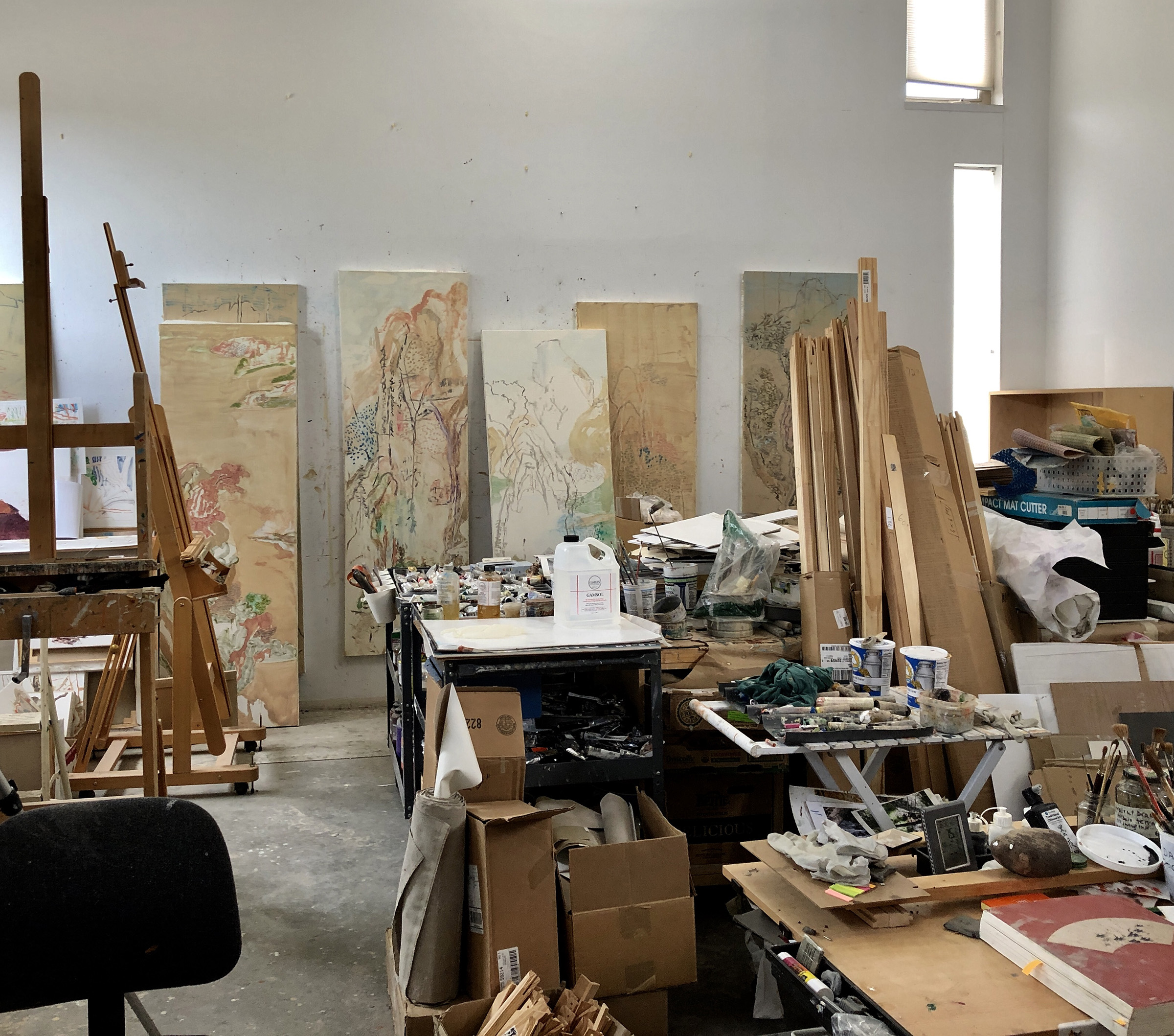 so this morning i began the process of clearing that south wall of all kinds of stuff: stretcher bars, books, magazines, brushes, etc. so that all 6 of the lower vents are accessable. a lot of work. mid afternoon, after she was done with her actionlab360 work at the house, mikela joined me & helped move stuff. once the vents are sealed i’m going to have to do a lot of reorganization & discard a lot of no-longer-needed materials. it’s an interruption to my work flow, but….must be done!
