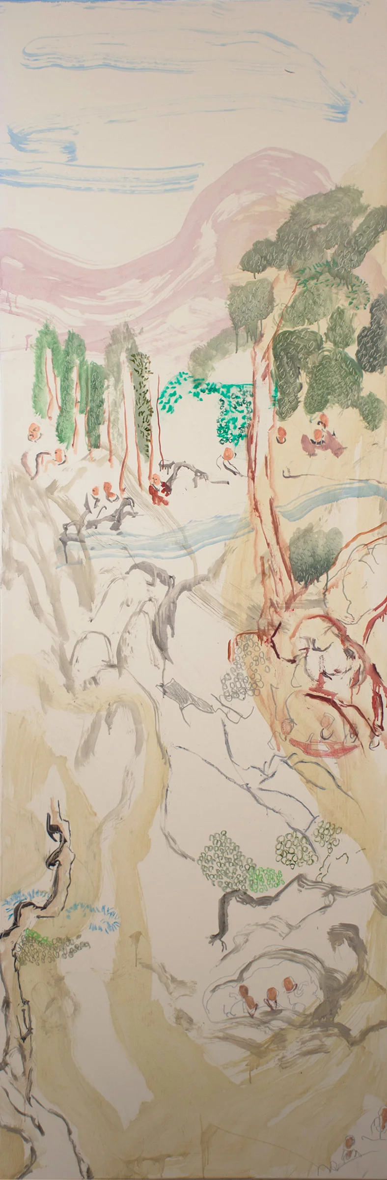 i arrived rather late in my studio, and started my painting day with a modest revision of minoo. the siena in the upper central portion was bothering me; perhaps yet another observation of somewhat bothersome colors, following my cataract surgery.