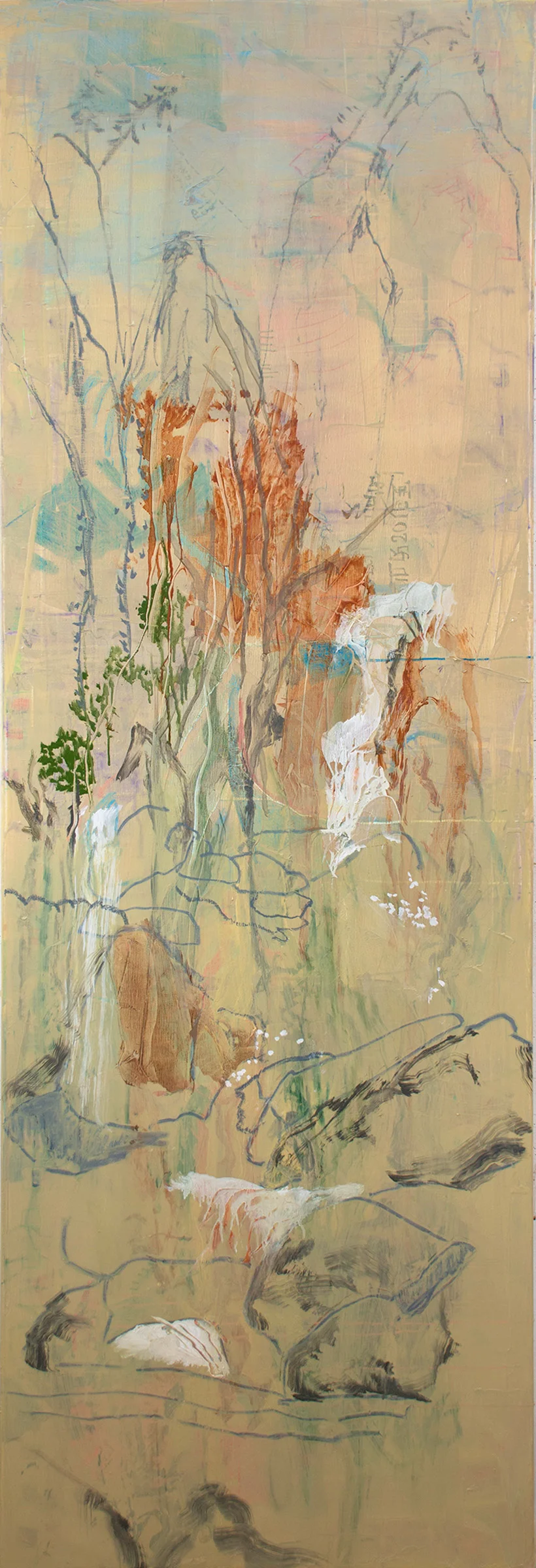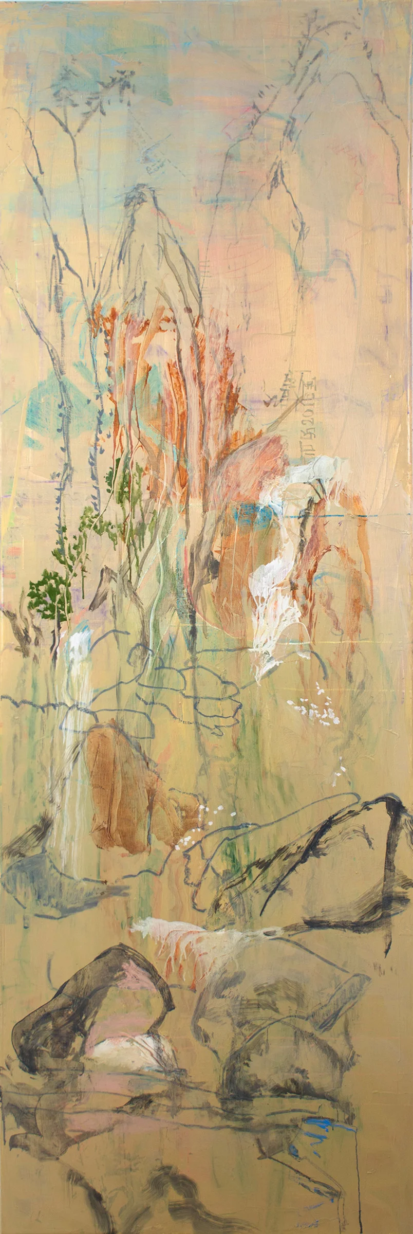 as well, i made some bolder, stronger rock marks at the bottom and added a bit of blue, which i believe has made a big difference. we’ll see how i feel about it tomorrow morning, but right now it seems like a much stronger painting.