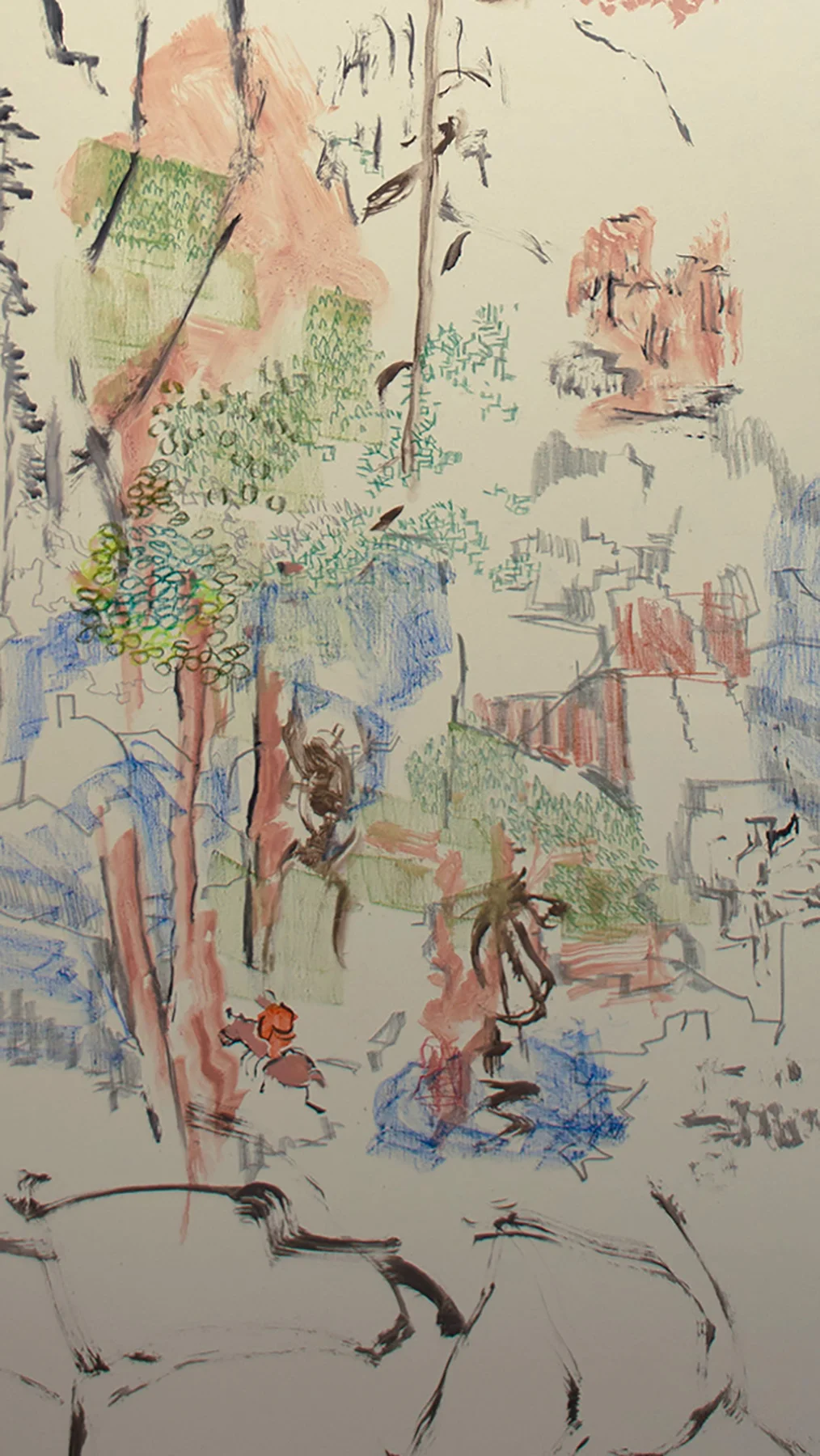 i expect that tomorrow will bring greater unity to this somewhat fragmented composition, with some large areas on tone bringing forth the calligraphic marks & bonding them into one coherent whole. maybe.