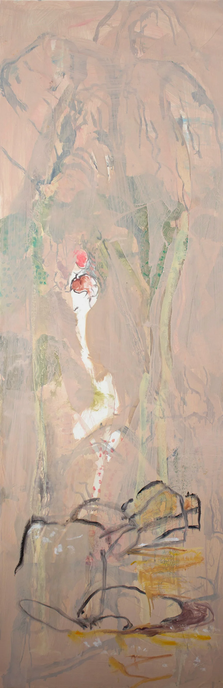 i went over it with a warm reddish tan color & worked into it, leaving just one shape in the center revealing the white linen beneath.