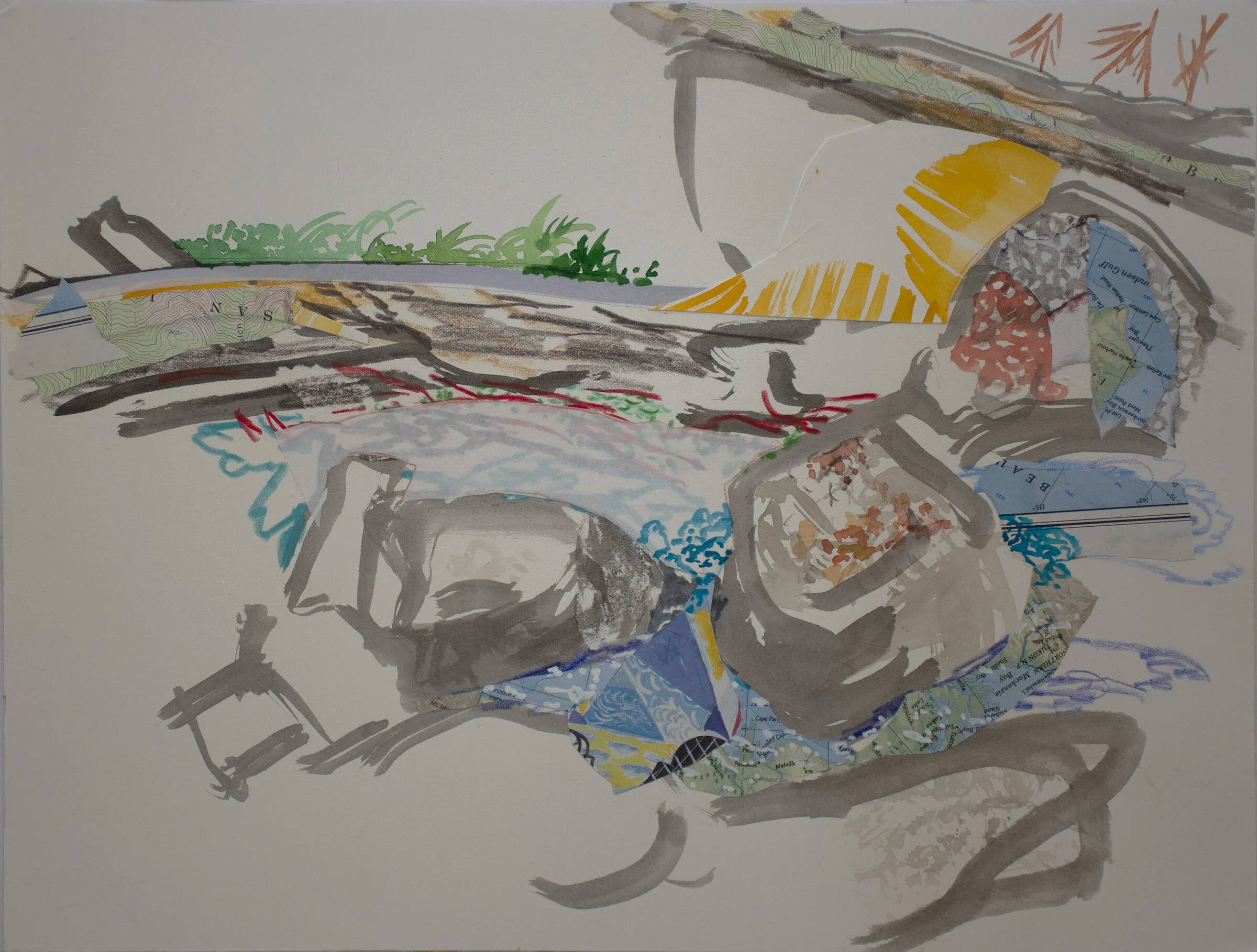 1:52 PM: i wasn’t satisfied with yesterdays watercolor/collage 144, so i did more work on it. quite a bit, actually. it’s really a different painting with the same bones. it’s more engaging to look at; there’s so much more going on! but right now as i look at it, i feel somethjing more needs to happen, probably in the direction of simplification. it needs more white space. and as usualy, i have to be willing to sacrifice bits that i like in favor of the whole composition. i’ll post again towards the end of my working day.