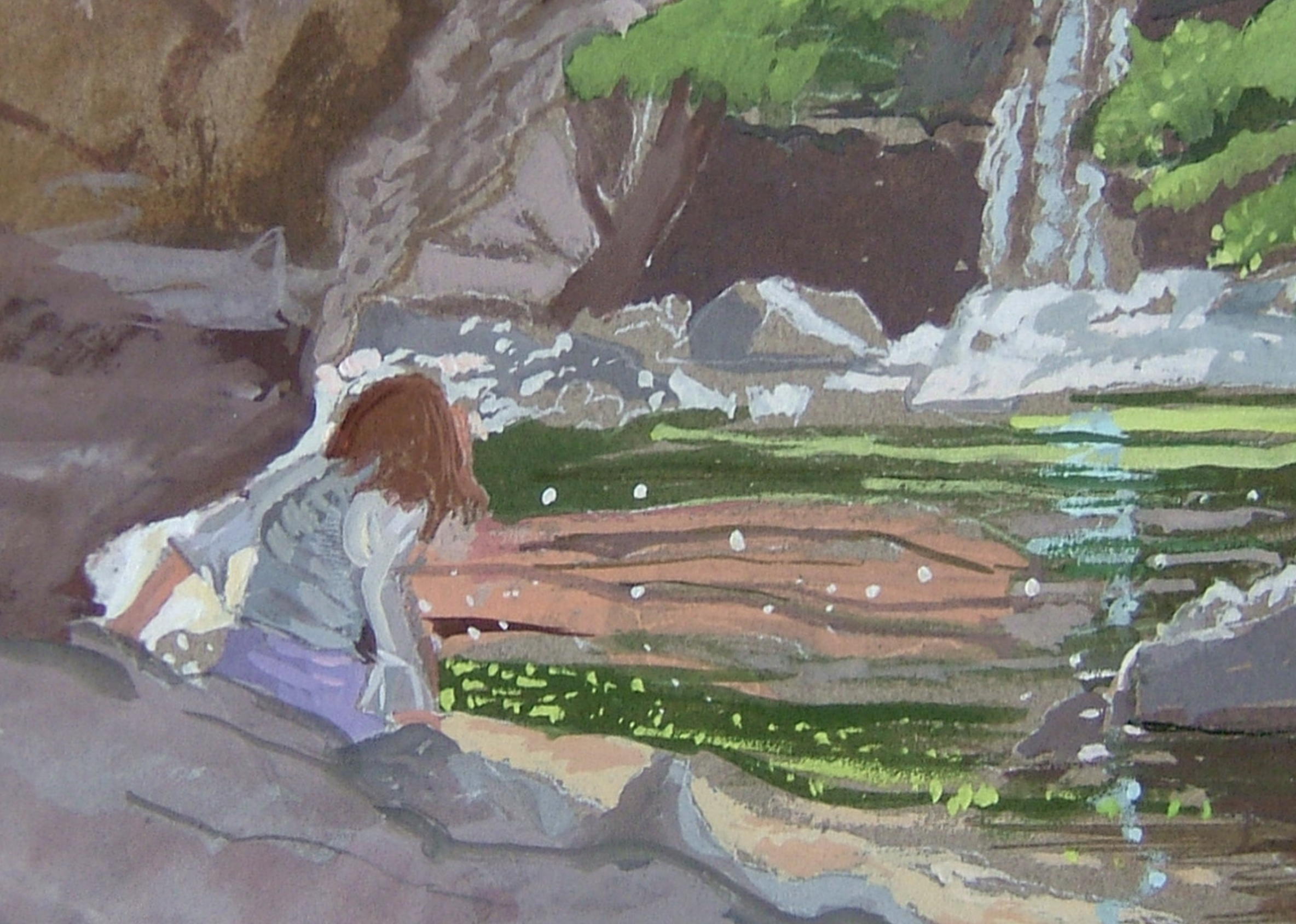 i’m in conversation with an author in greece, whose novel will be published in 2021. for the cover of the book, she’s using an image from a watercolor i made in 2005, of a girl on a rock at pithara, a small waterfall in the hills of the island of andros.