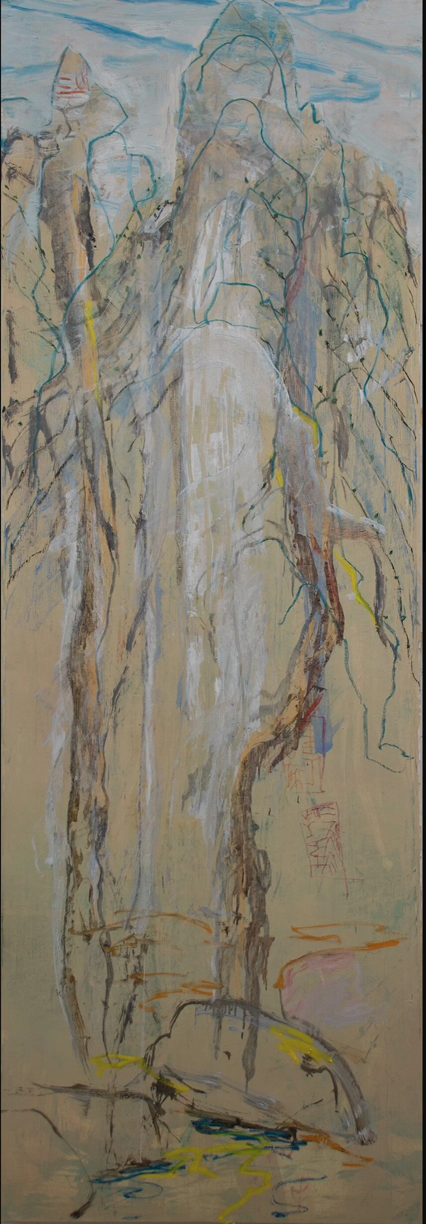 2:34 PM: so i went back into sparse reflections and made additional changes following my 11:42 am post. i was able to bring it closer to the state it was in before yesterdays intervention. i’m not yet sure, but i may have actually improved it. i like the rock formation on the bottom better, especially due to the treatment of the water beneath both rocks, and i think how i handled the waterfall in the center is more compelling and more magical. it now has an otherworldliness i like a lot. lets see how i feel about it tomorrow morning.