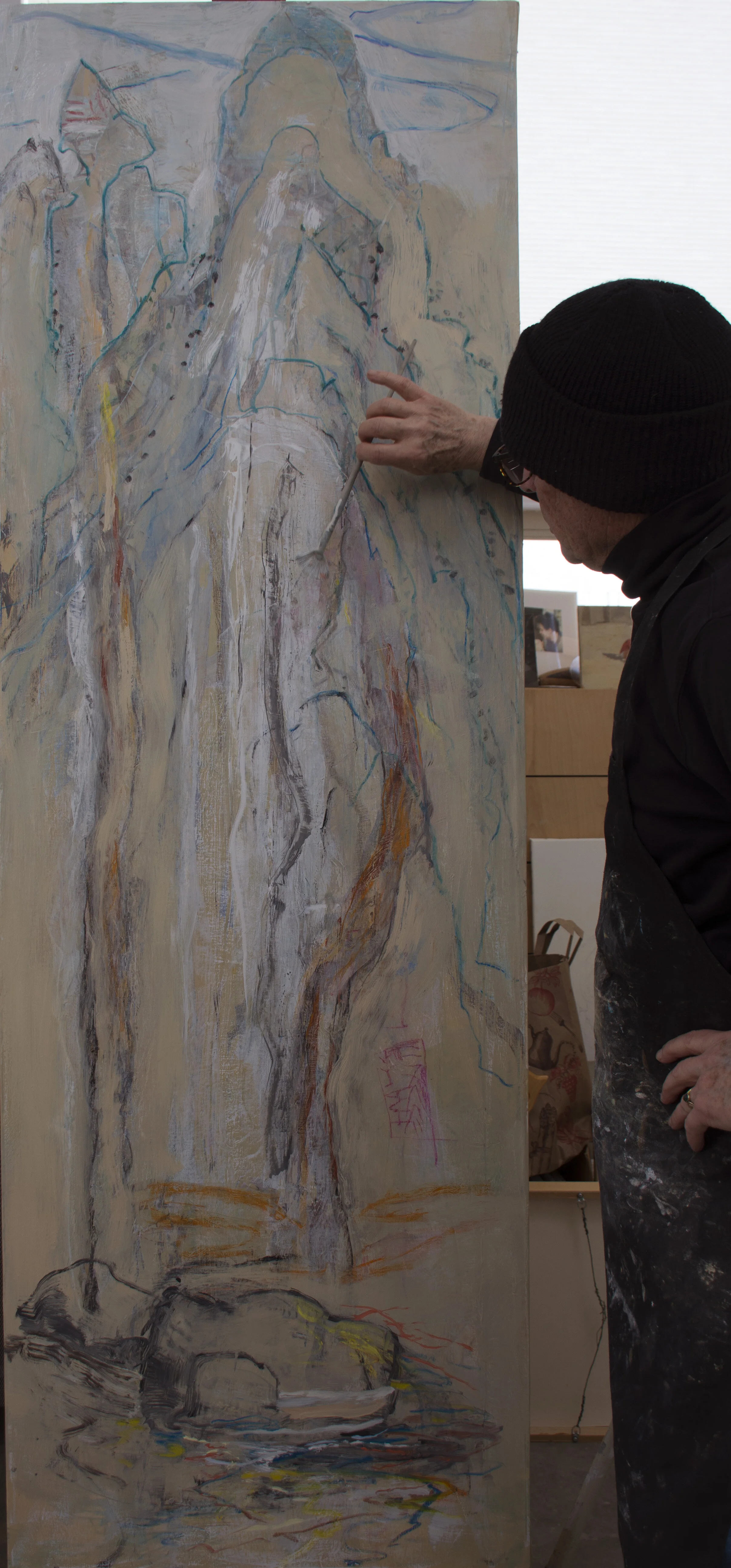 11:42 AM: i realized yesterday after leaving the studio that it was a mistake to mess with sparse reflections. influenced by my recents experiments whiting over illusory city and il torrente, i was bothered by what seemed to me to be the business of sparse reflections. actually, it was perfection! so now today i’m trying to execute the virtually impossible task of getting this painting back to where it was. my highest thought is that i can actually make it better, but it ain’t there yet! the beiges need more yellow, need to be a bit brighter.