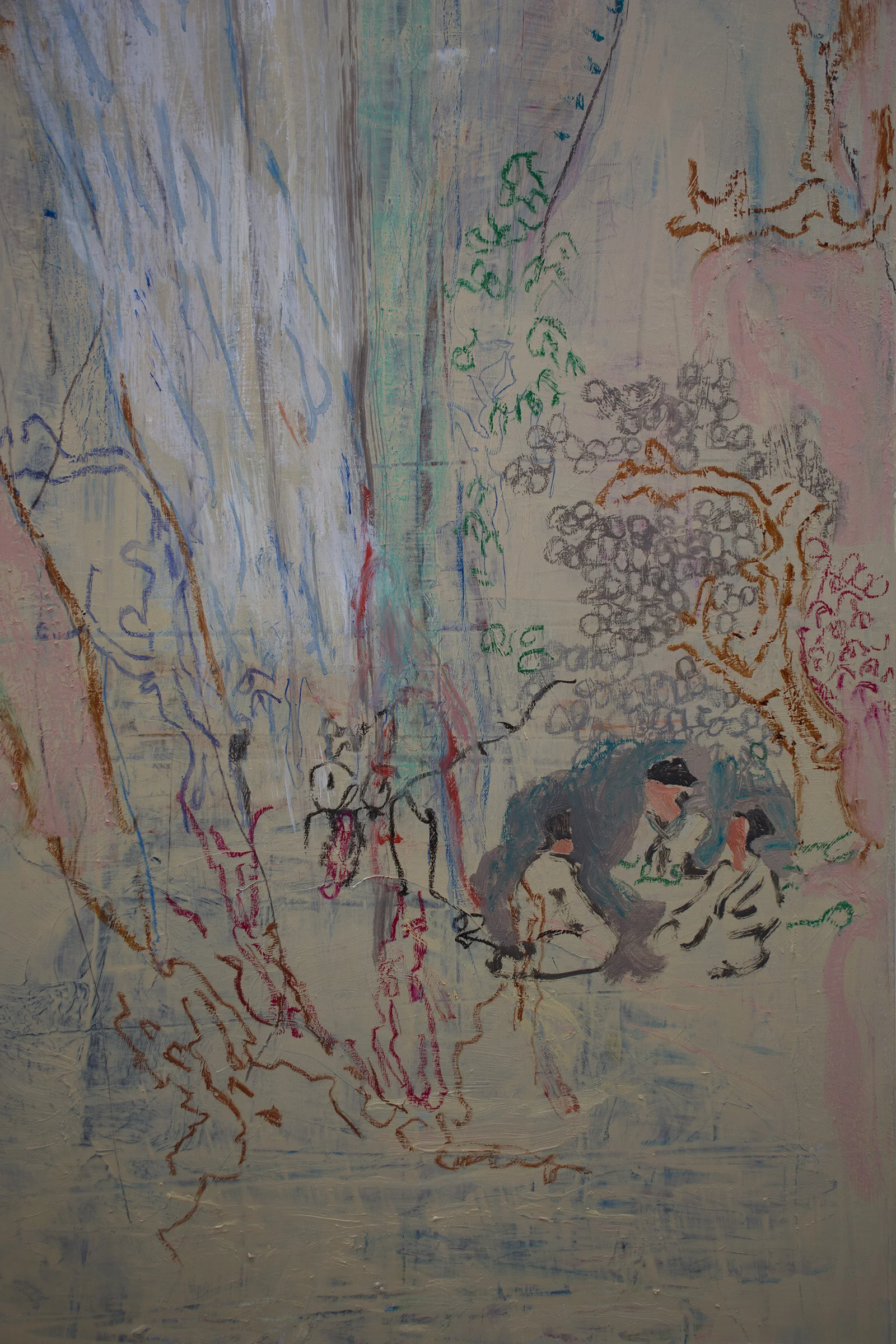 my current internal sense of a global landscape in distress pushes me towards an idealized dreamscape. so that these 3 figures sitting on the earth somewhere in the wilds of the japanese mountains conjures a feeling akin to what they may have felt on fleeing the harsh reality of an always changing oppressive and unpredictable government.