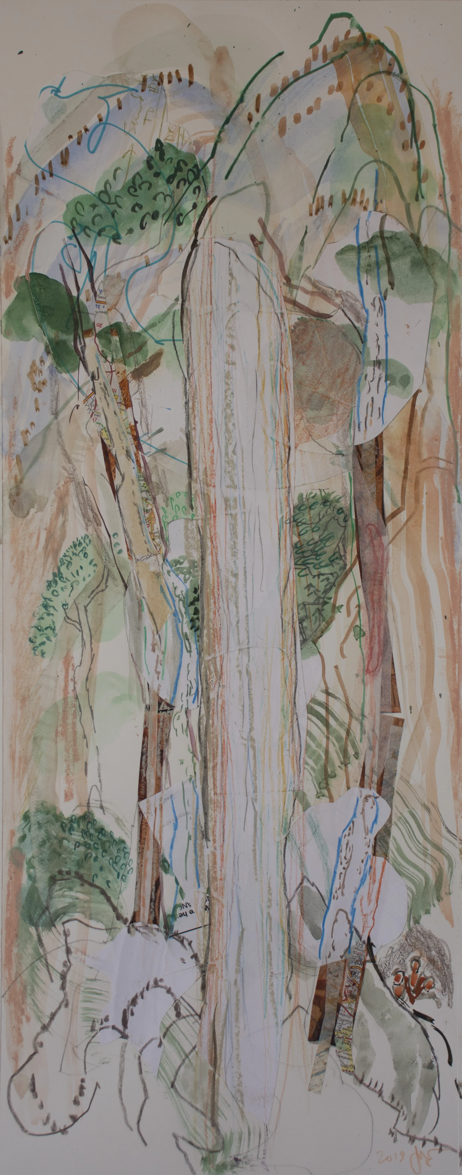 i also photographed this small, 22 1/2 x 8 3/4” collage, which had been sitting on one of my tables since i completed it, and this morning when i looked at it i had a new appreciation for it’s qualities. it too is part of the sound of a flute series, all of which are inspired by the great 18th century master calligrapher and landscape painter, taiga.