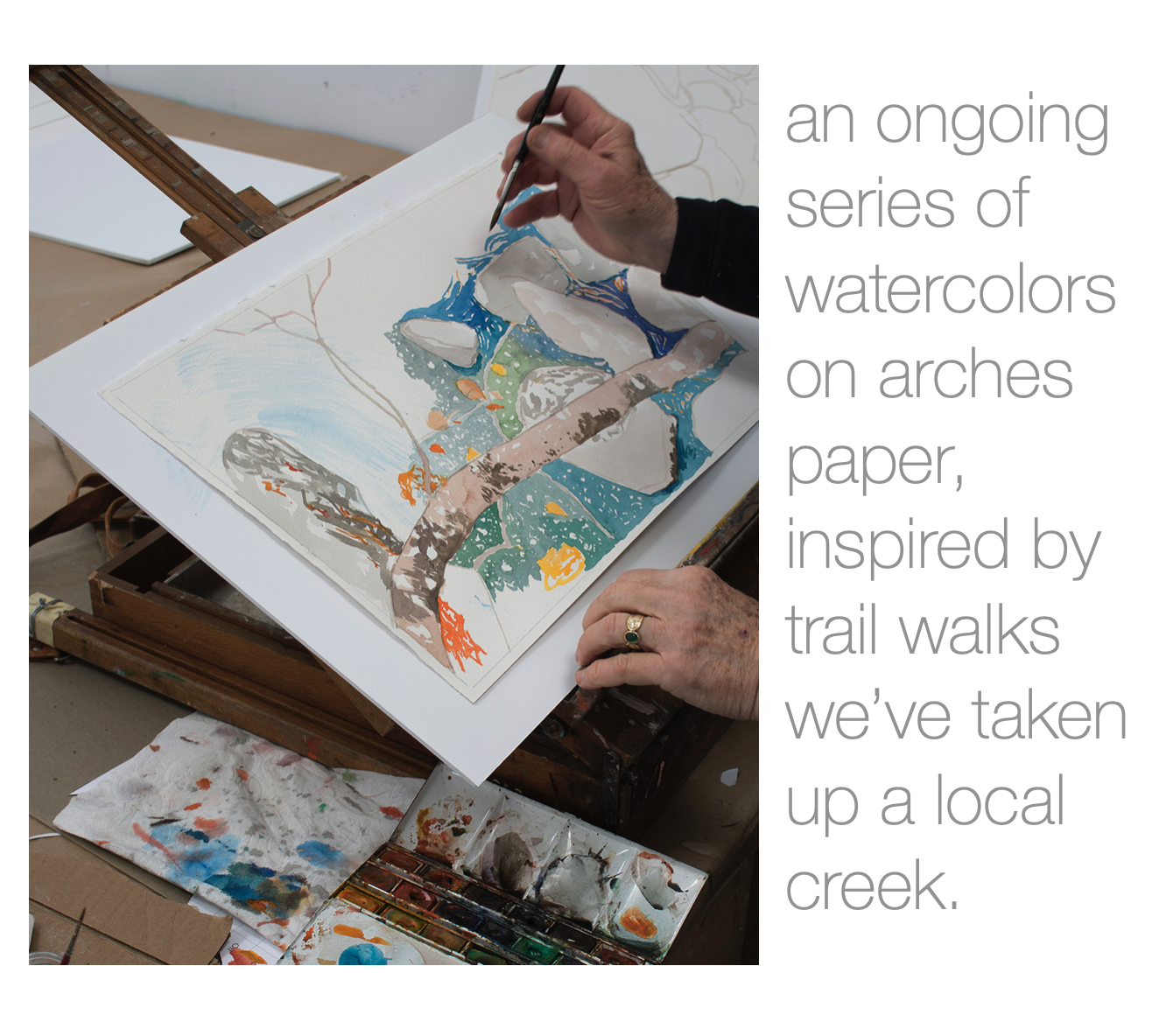 3:06 PM: just comnpleted work in my studio for the day, and about to take our now daily walk up the creek. i changed the drop-down menus on the site, and this is the new header for the 2020 watercolors page: