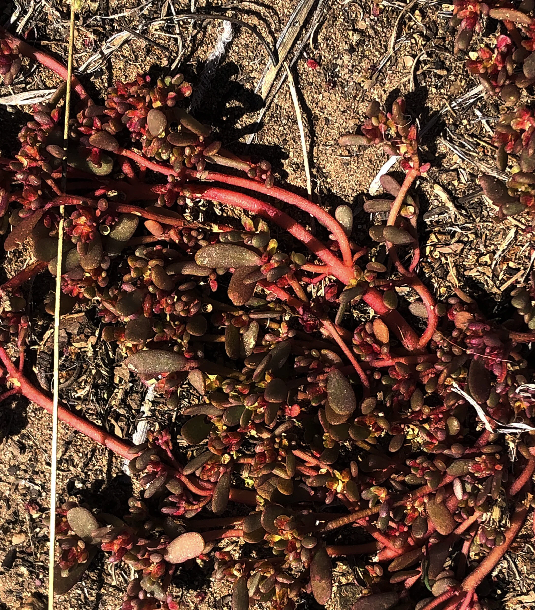 8:38 AM: this is cactus-like, but not a cactus. perhaps my friend barb will know; i’ll send it to her. is that a scintillating red, or what? it will likely show up in a painting soon.